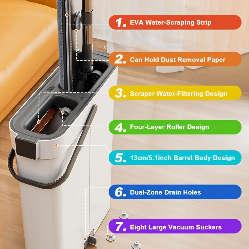 All-in-One Mop and Bucket System with Reusable Pads for Wet and Dry Cleaning