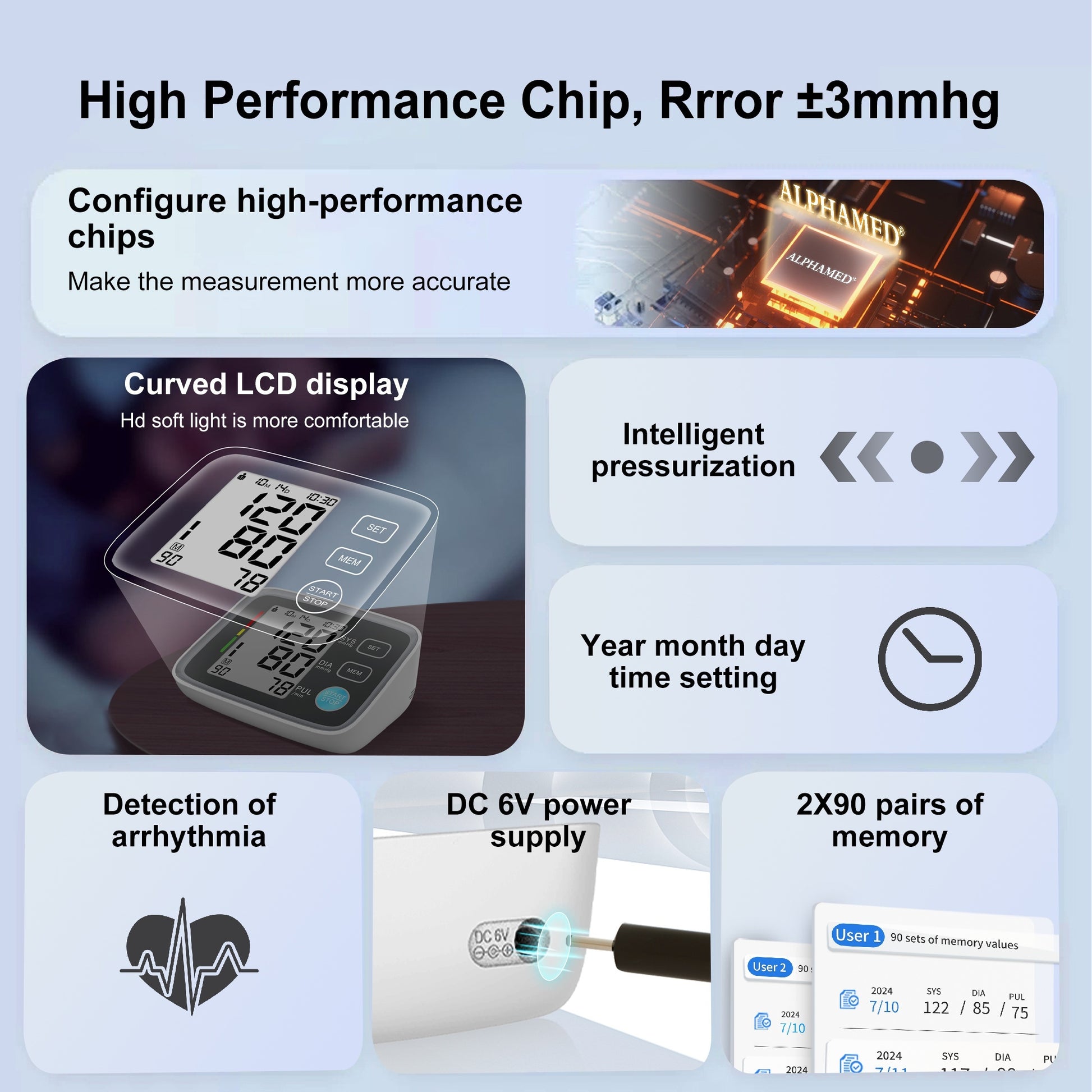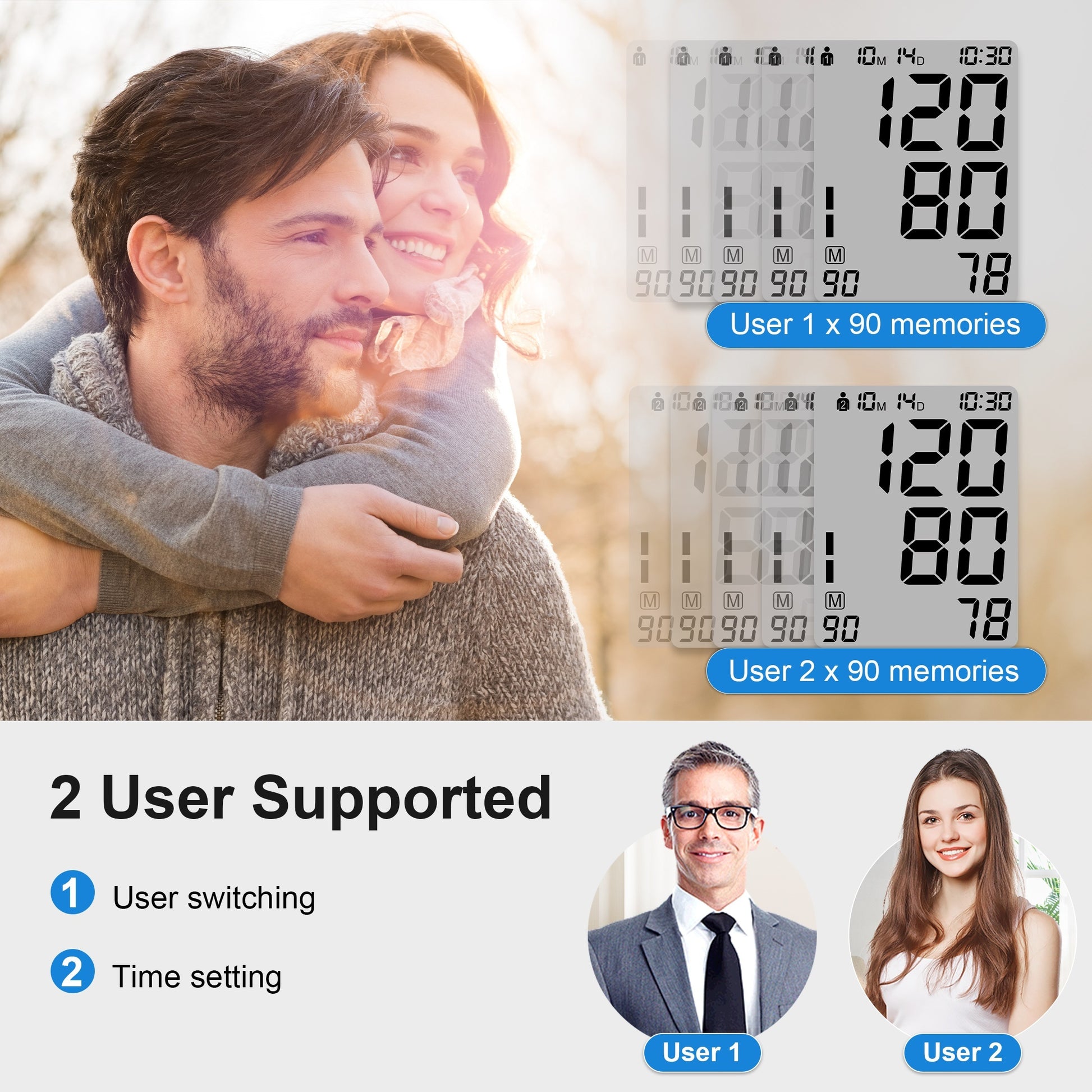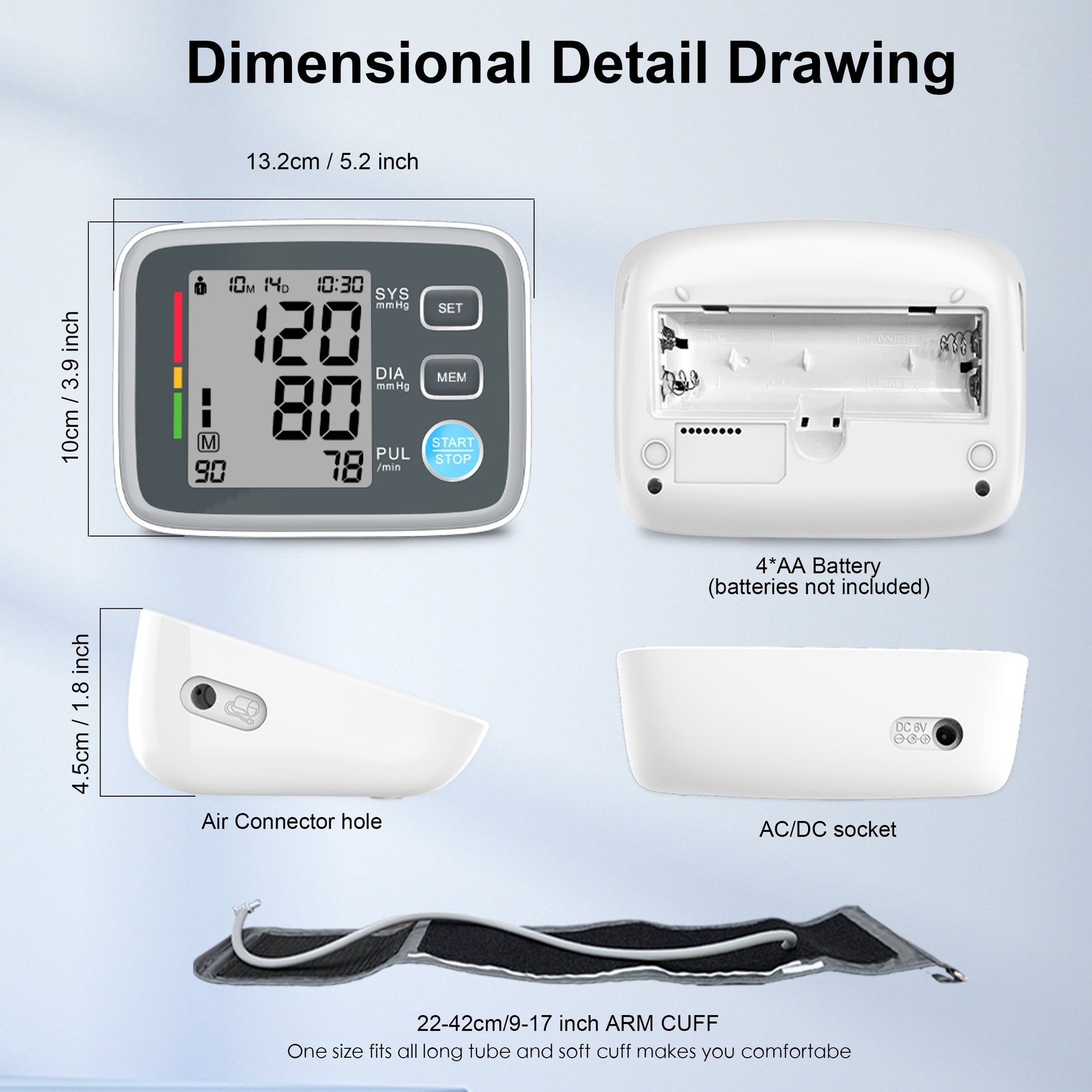 Automatic Upper Arm Blood Pressure Monitor with 22.1-43.18 cm Cuff Digital BP Machine Battery Powered