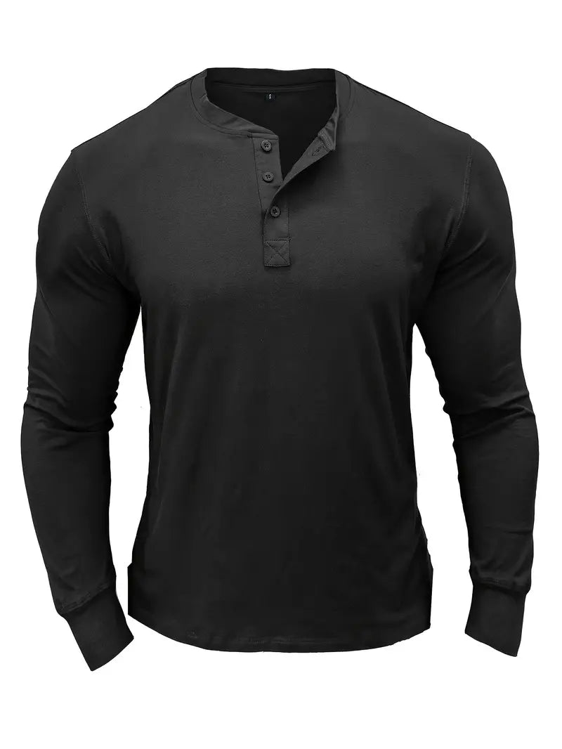 Men's Long Sleeve Cotton T-Shirt Henley Solid Fall Winter