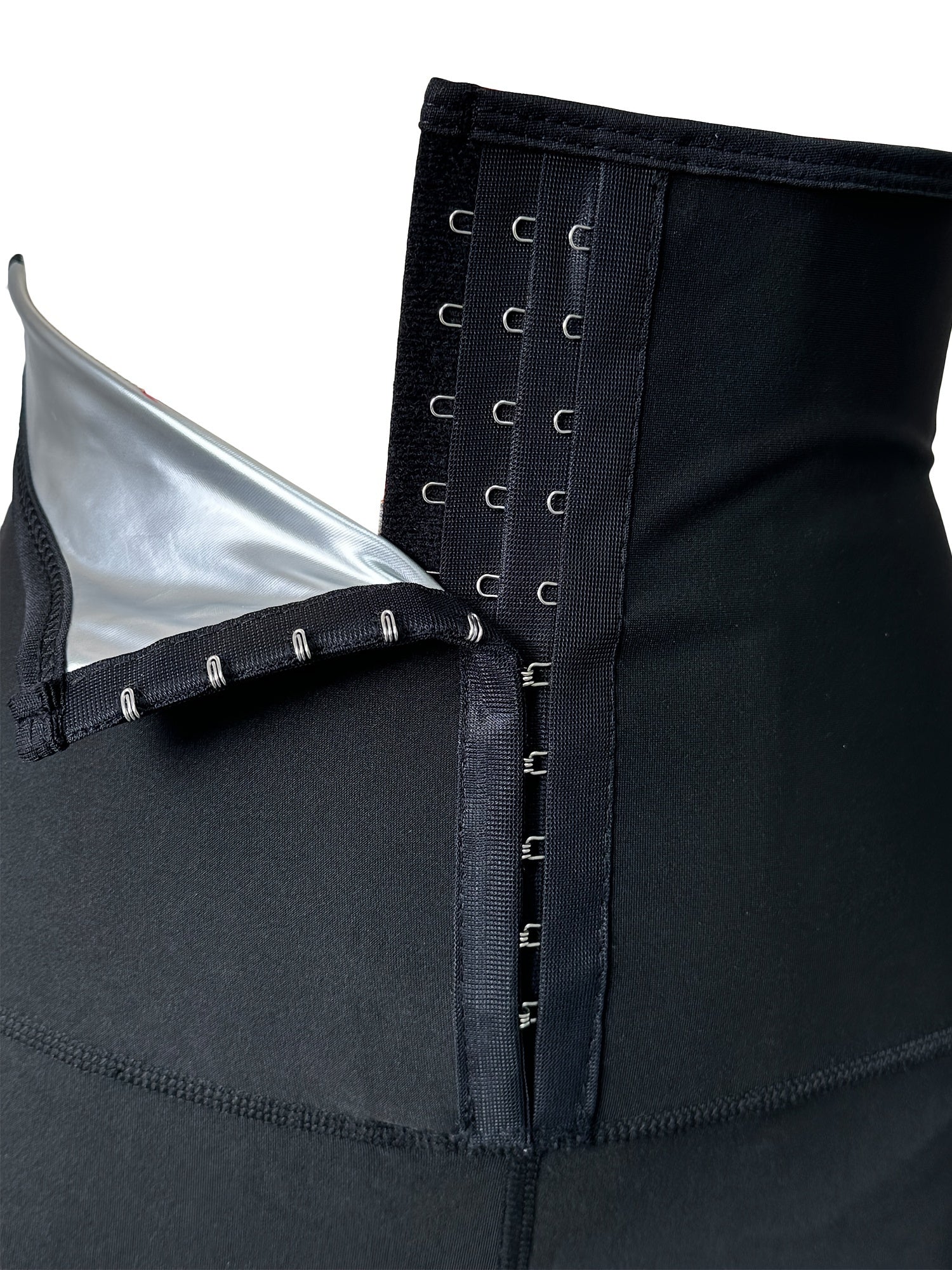 Women's High-Waisted Sauna Sweat Shorts Tummy Control Slimming Workout Leggings Black Polyester Elastane