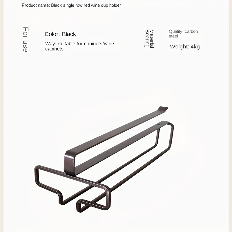 Black Metal Hanging Wine Glass Rack No-Drill Under Cabinet Stemware Organizer