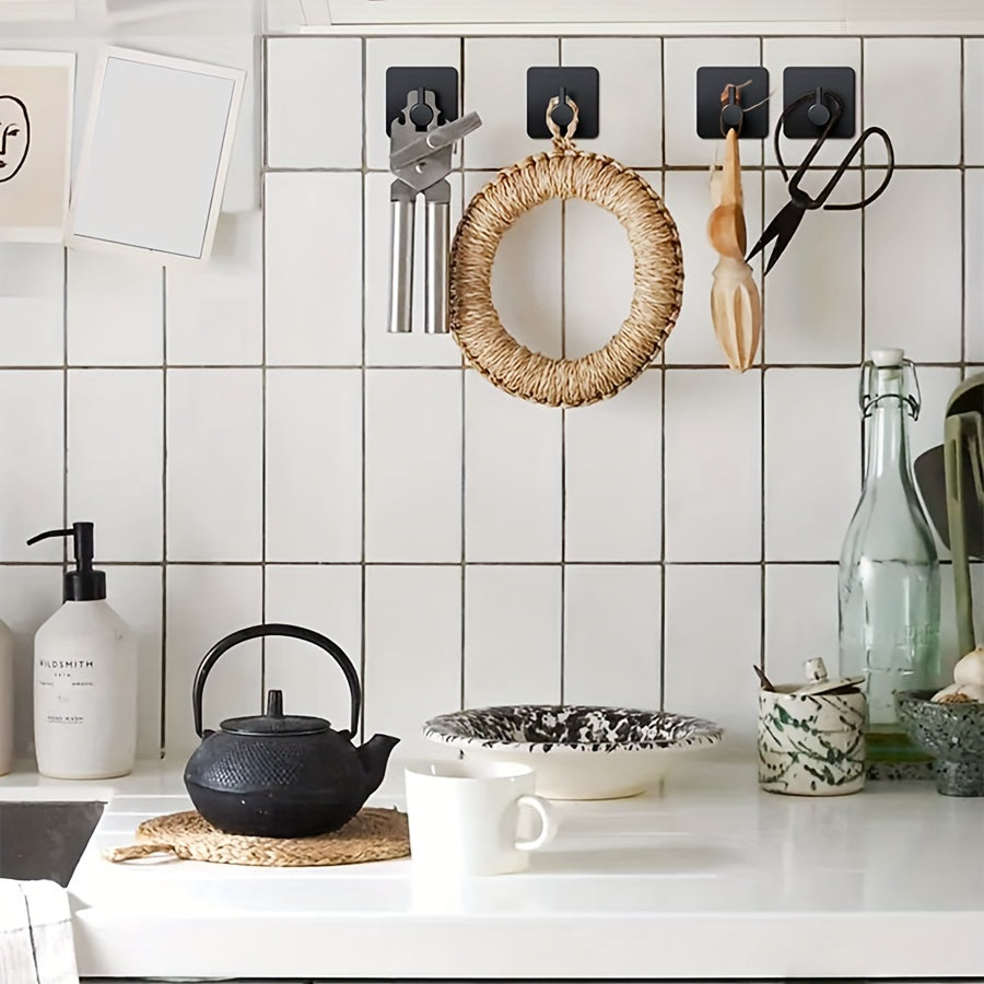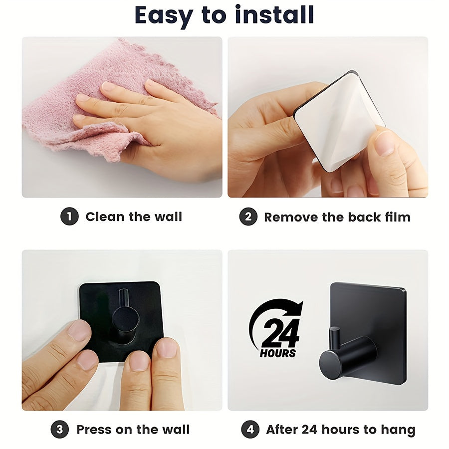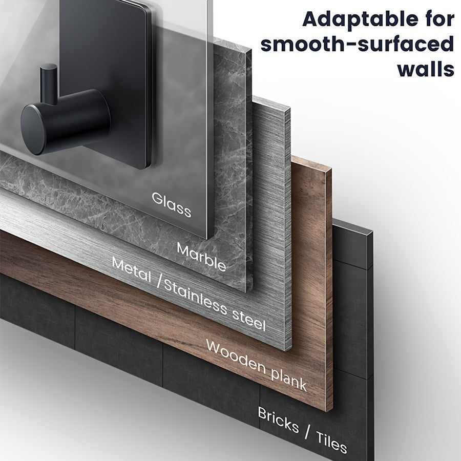 Black Stainless Steel Matte Towel Hooks Heavy Duty Adhesive Bathroom Kitchen Robe No Punching
