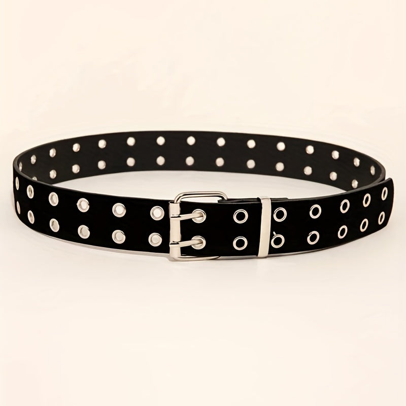Black Punk Waist Belt with Double Pin Metal Buckle and PU Leather Strap