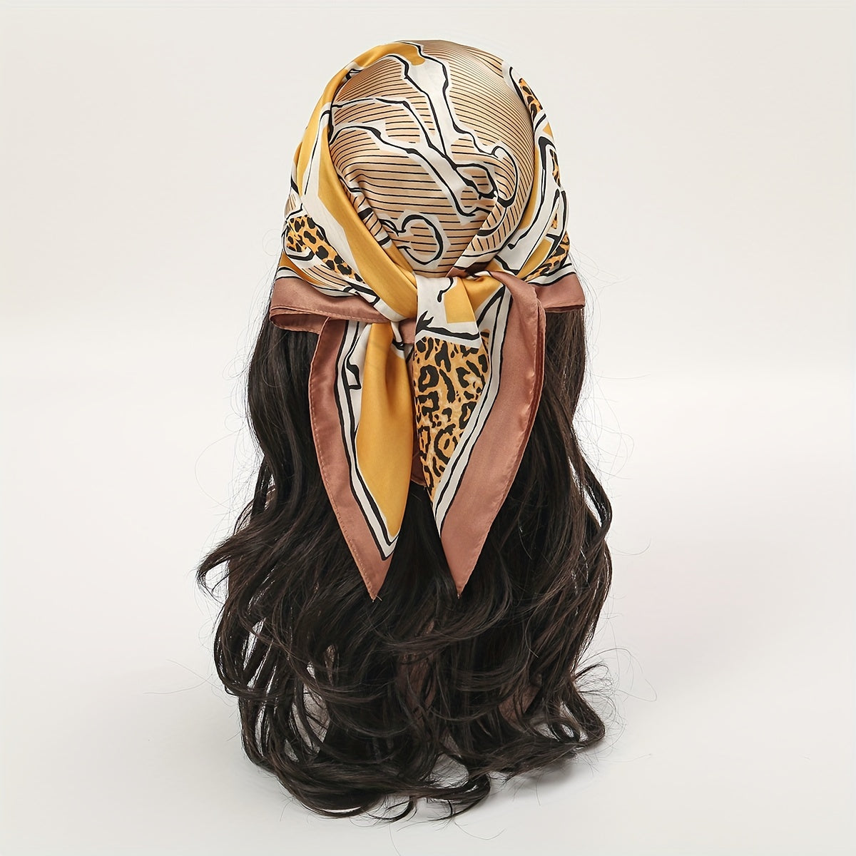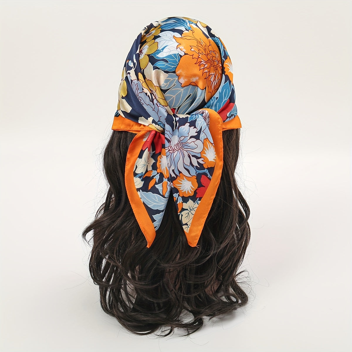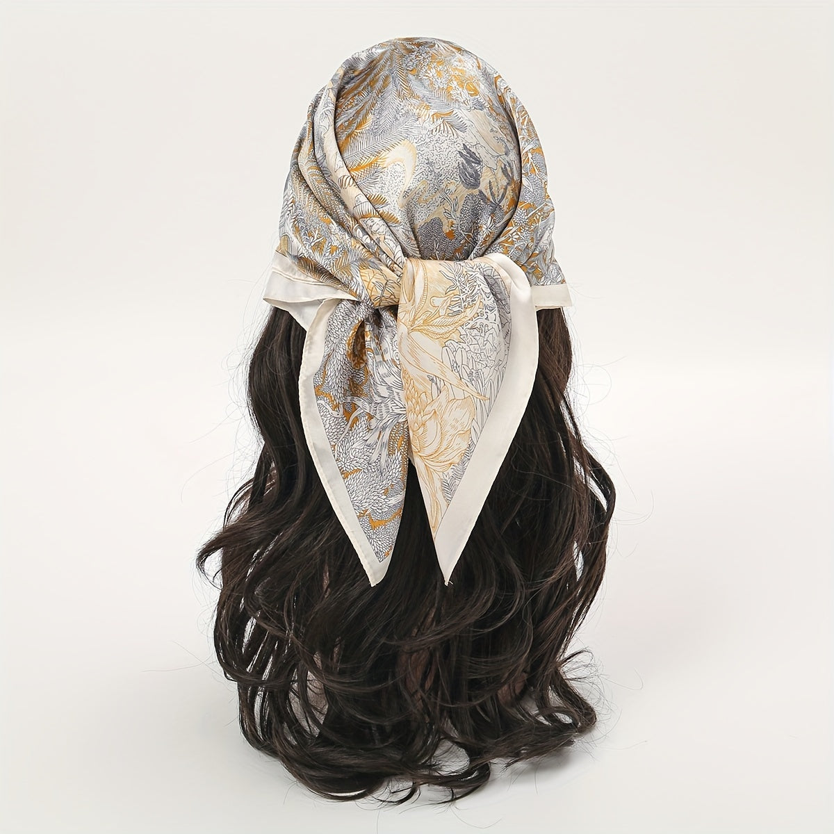 Boho Floral Print Square Scarf with Tropical Leaves and Flowers on Light Pink Polyester