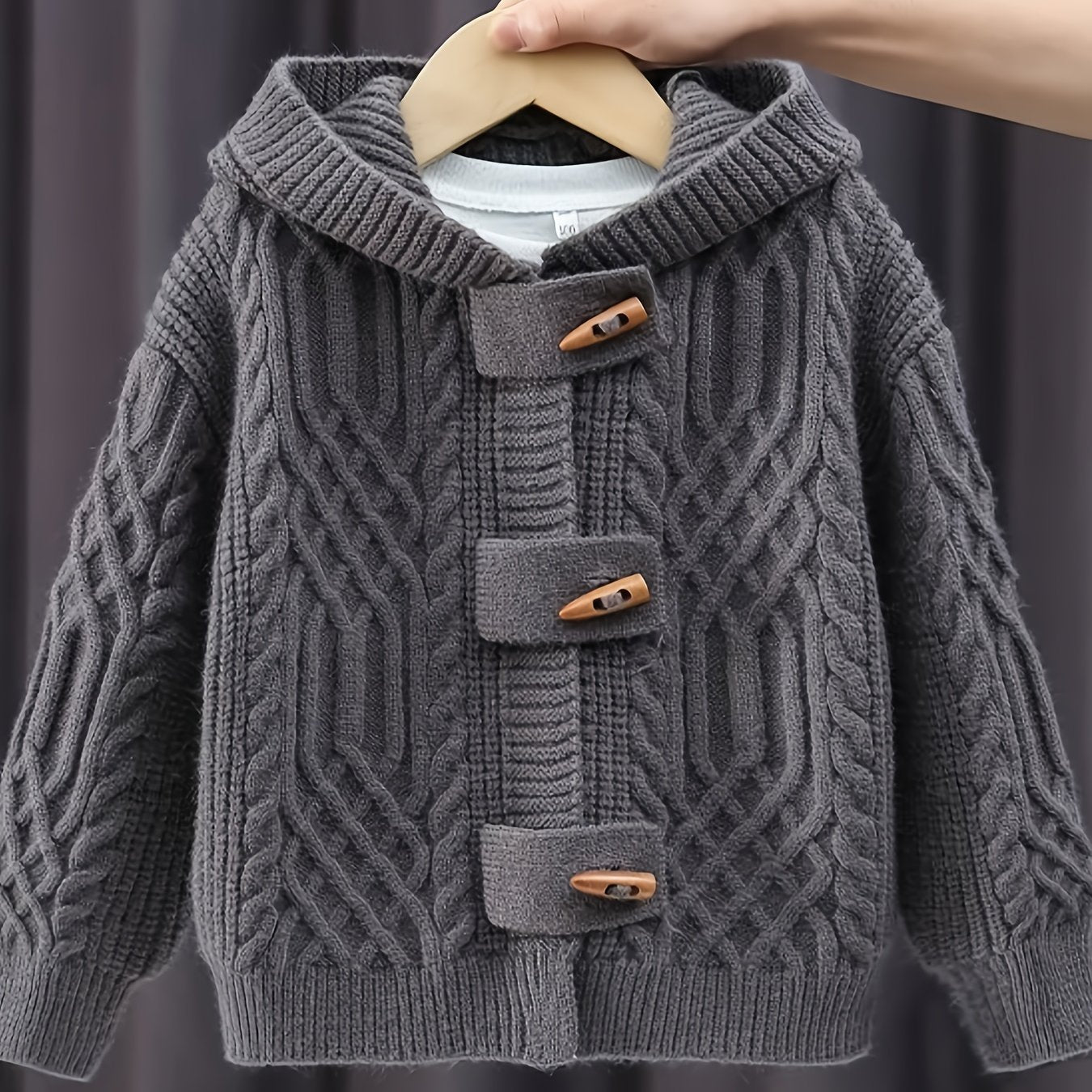 Boys Knit Cardigan Hoodie Long Sleeve Casual Fall Winter Thick Warm Button Up