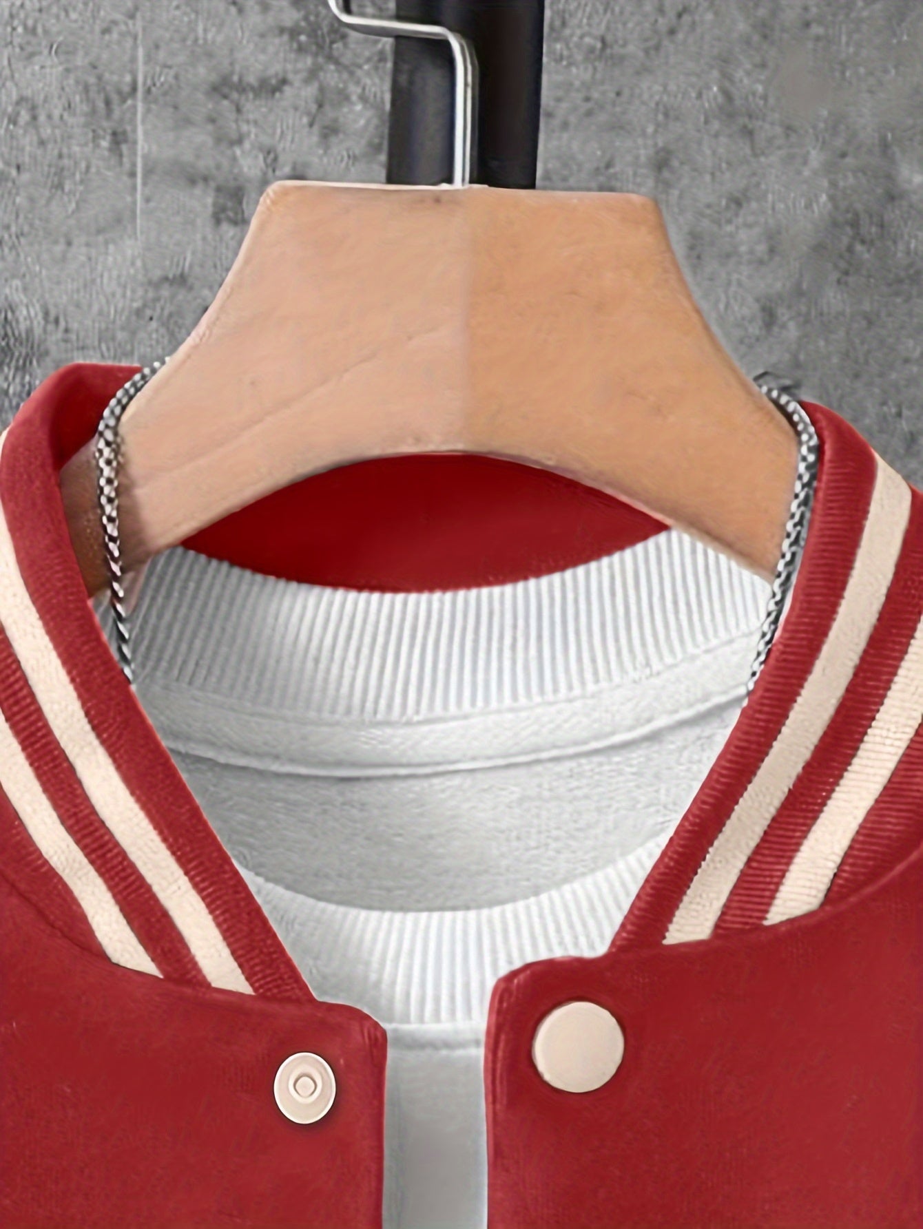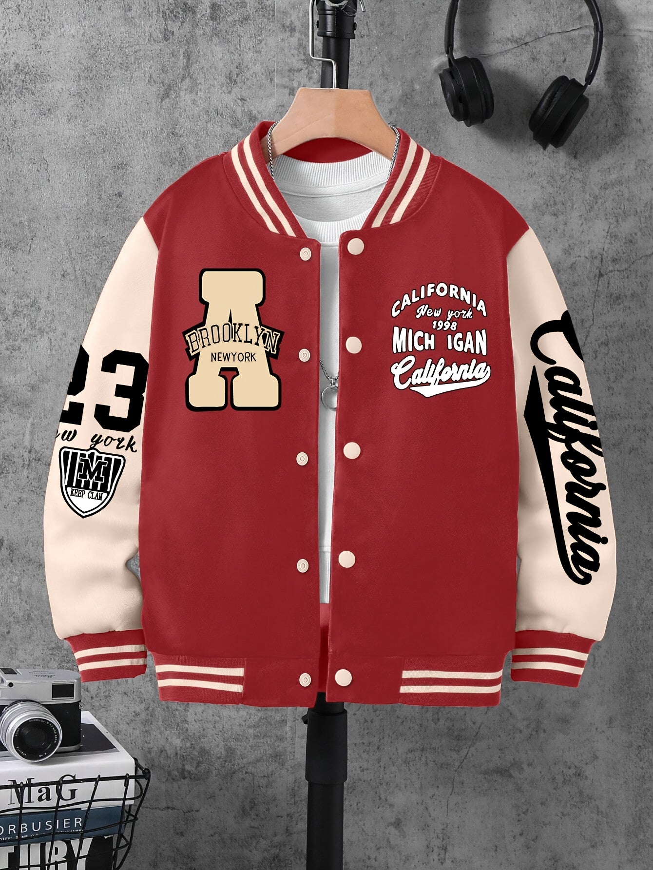 Boys Polyester Varsity Jacket with Geometric Pattern Baseball Collar Letter A Number 23 Fall Winter