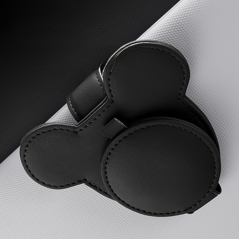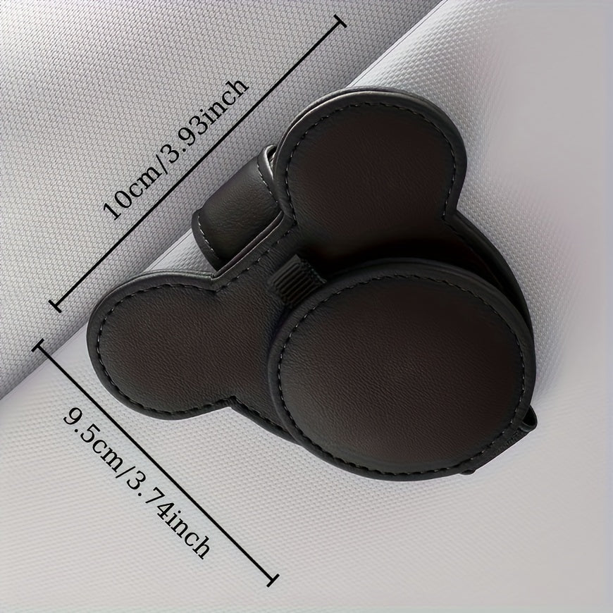 Car Sun Visor Card Holder Leather Clips Red Mouse Design Compact Organizer