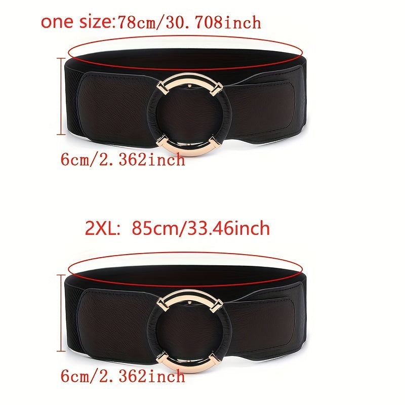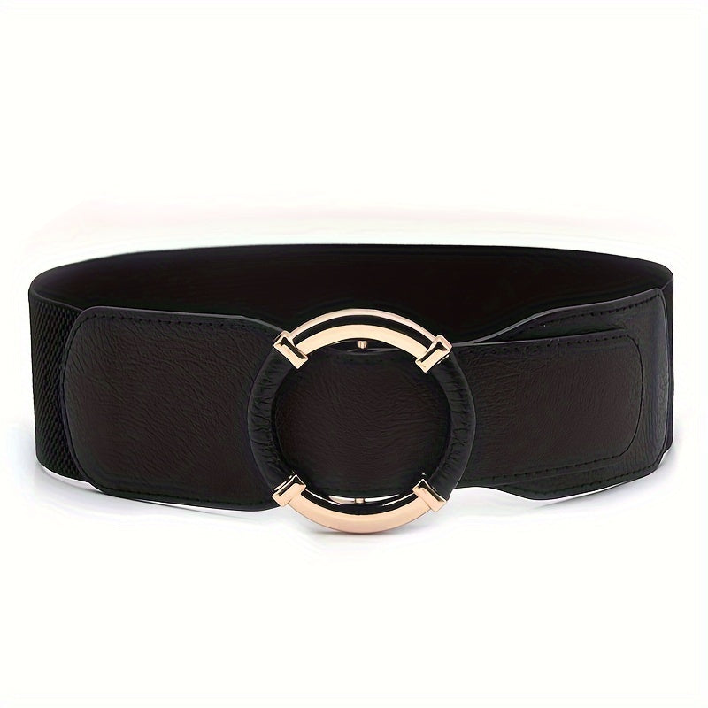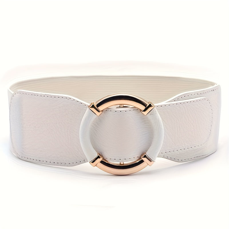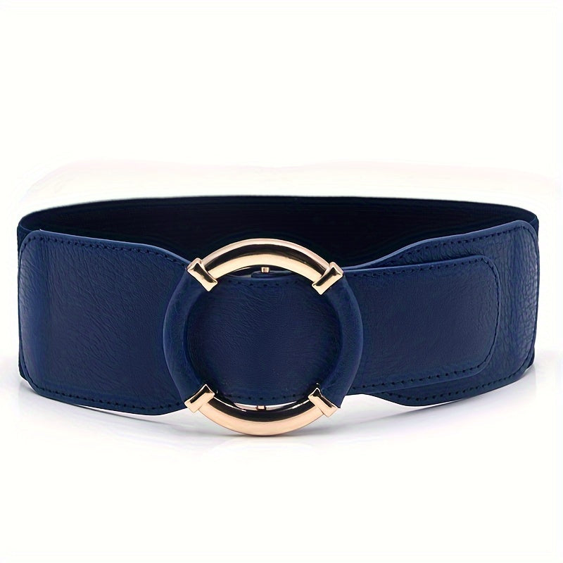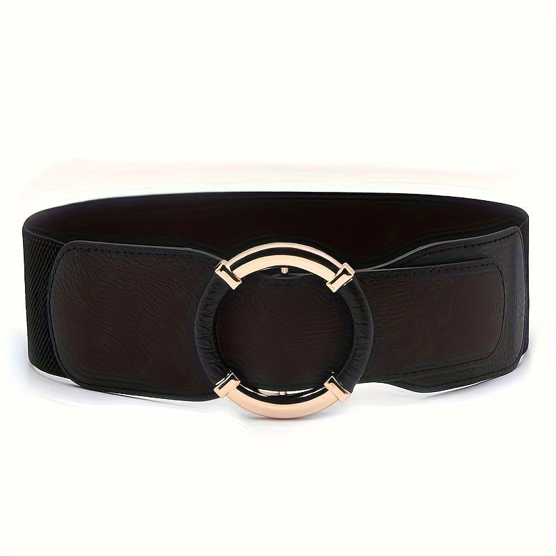 Women's Casual Elastic Waist Dress Coat with Wide Belt and Round Buckle in Solid Color