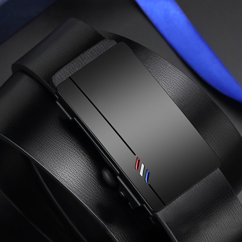 Men's Casual Faux Leather Belt with Automatic Alloy Buckle Black