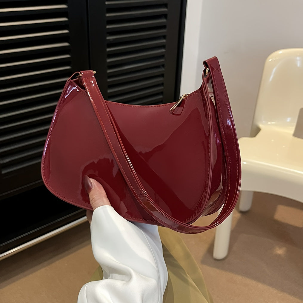 Red Shoulder Bag for Women Glossy Finish Zipper Closure Solid Color