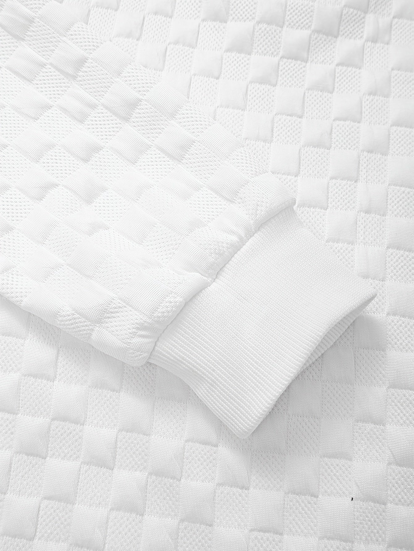 Men's Crew Neck Sweatshirt Knit Texture Checkered Design Cotton Casual Regular Fit
