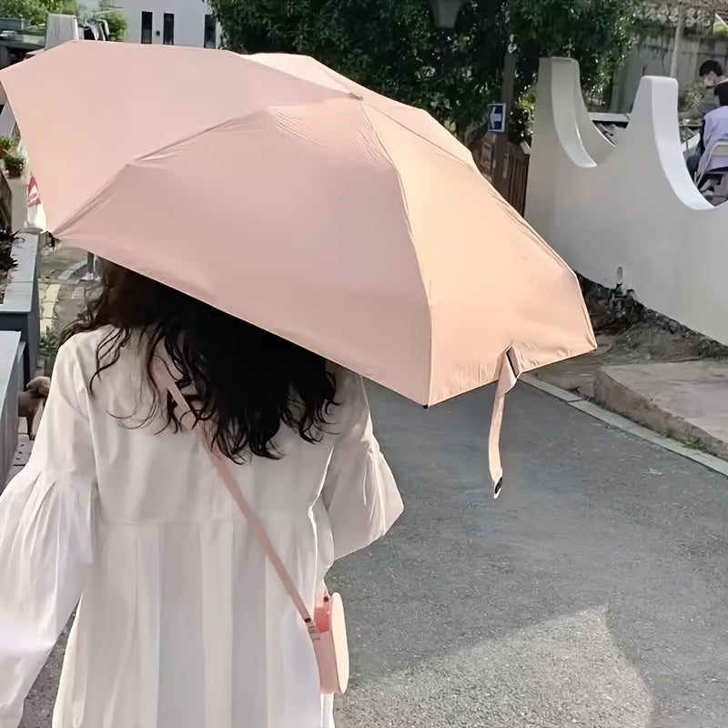 Women's Compact 5-Fold Umbrella Sun-Resistant Fabric 6-Rib Manual Open Plastic Handle