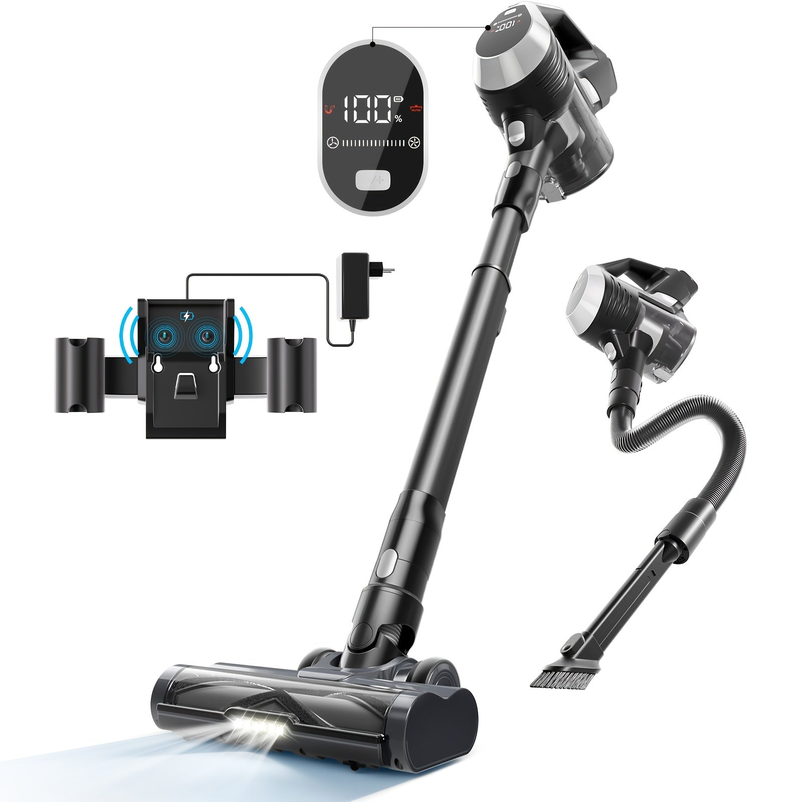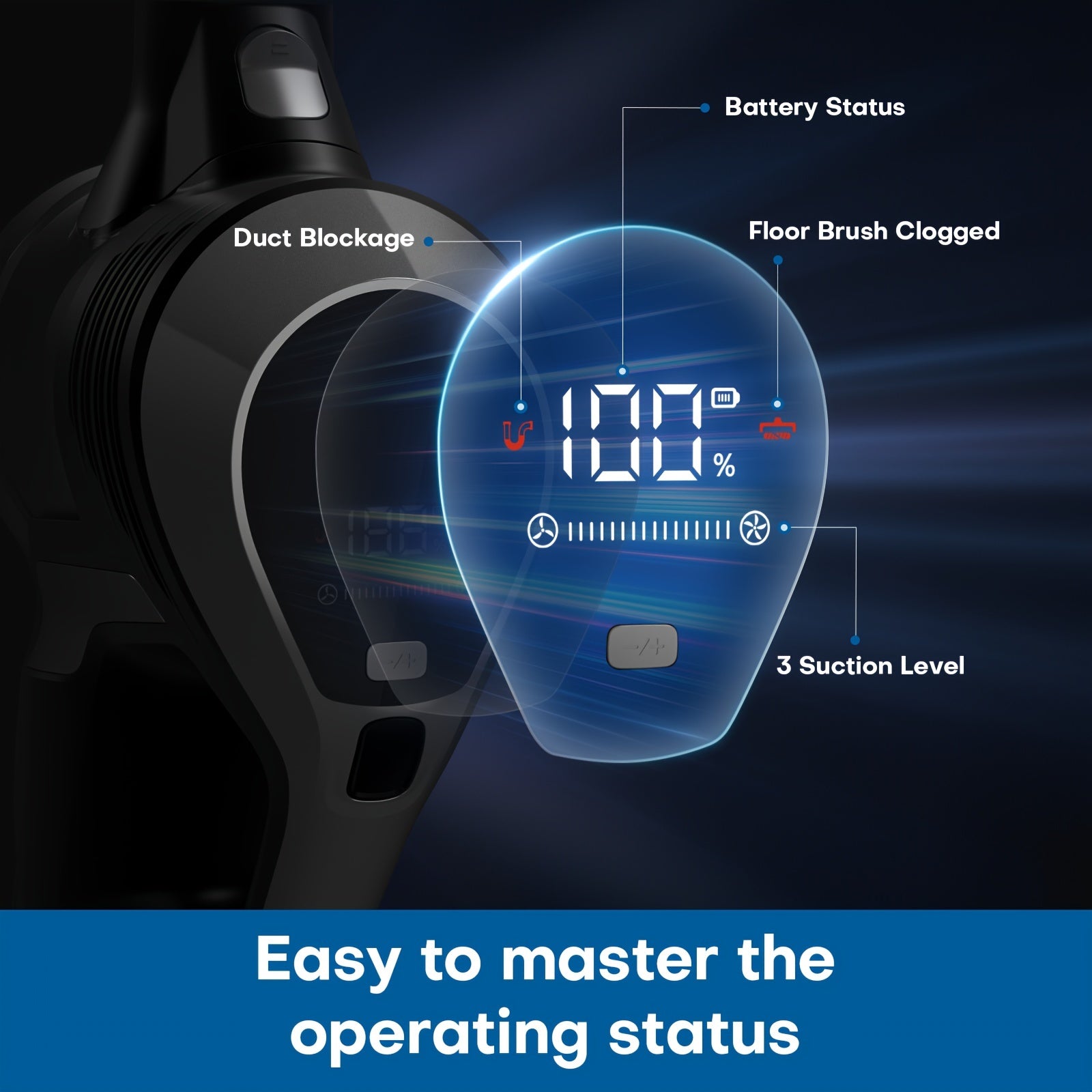 Cordless Vacuum Cleaner with LED Display Anti-Tangle Brush Powerful Suction for Pet Hair Hardwood Floors and Carpets