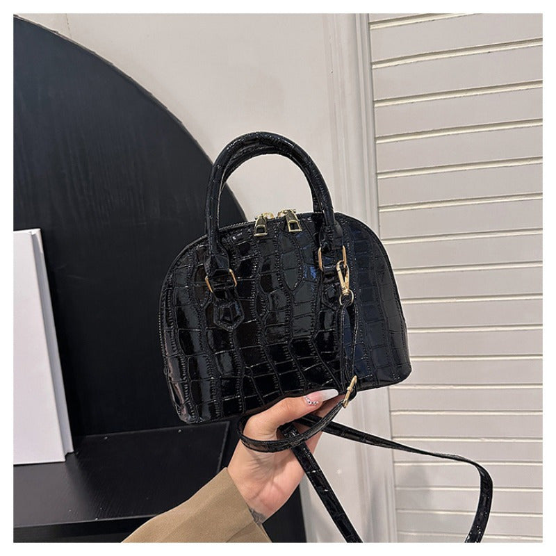 Crocodile Pattern Shell Handbag Small Square Shoulder Bag with Removable Strap in White Black Burgundy