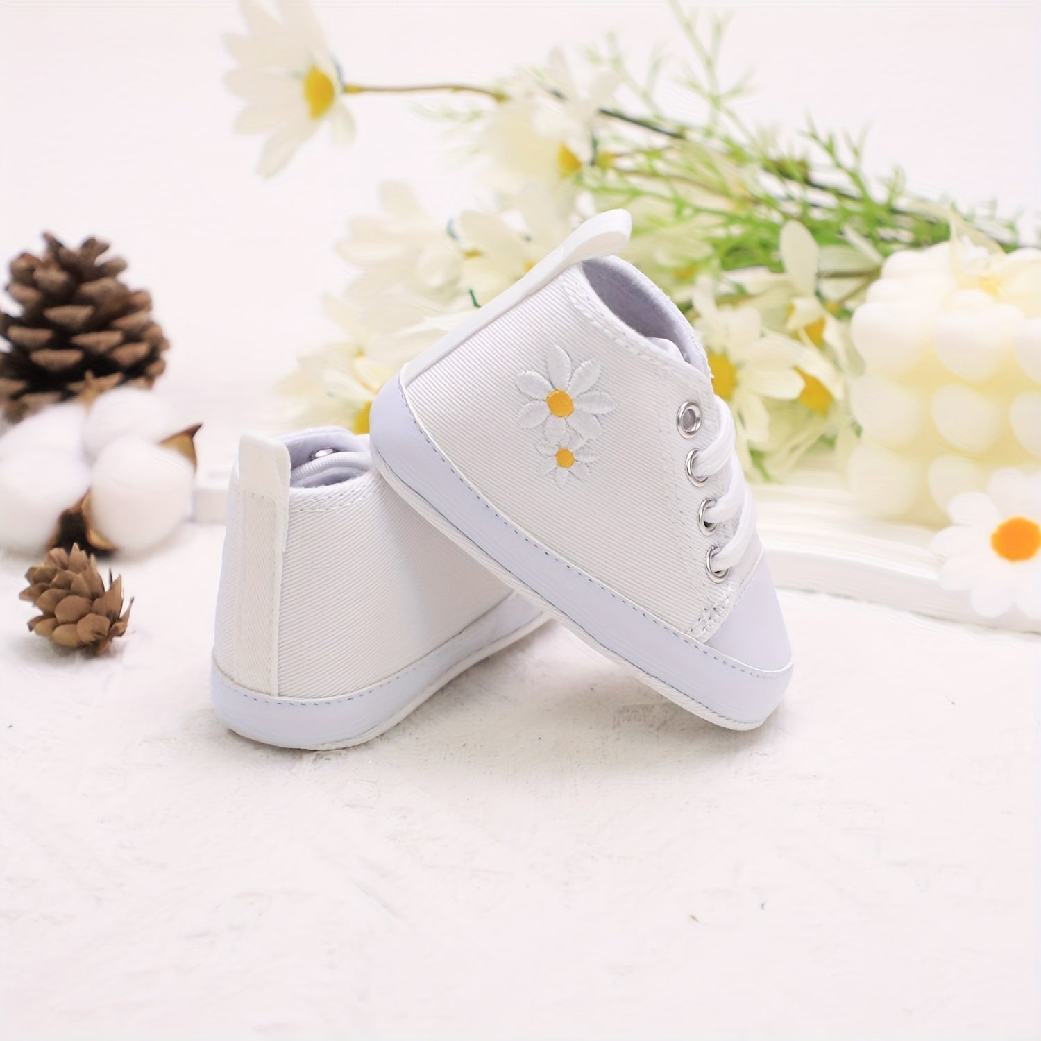 Baby Girls Embroidered Daisy Sneakers Lightweight Non-Slip Canvas Shoes for All Seasons