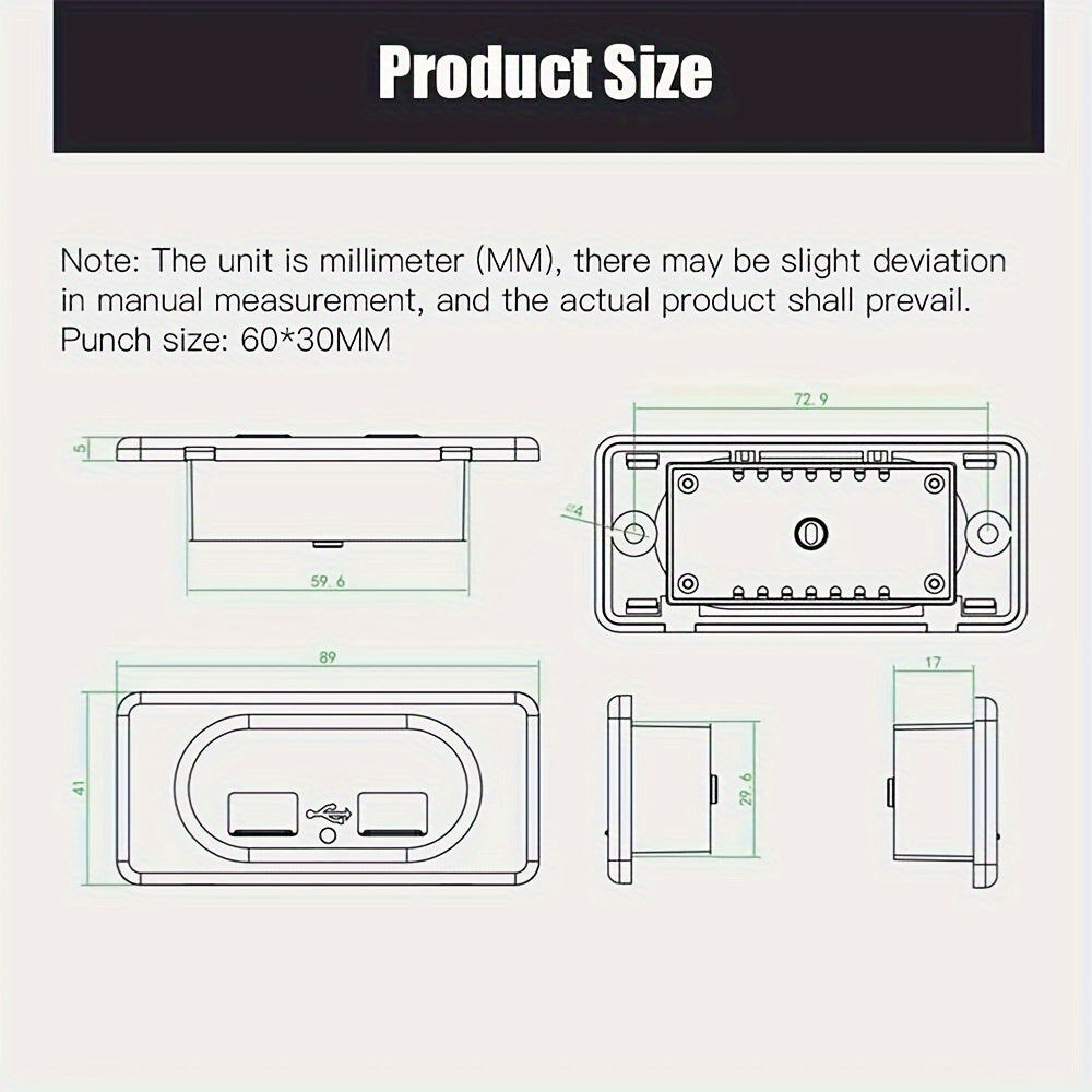 Dual USB Port Fast Charger Socket for Motorcycle Car RV ABS Material