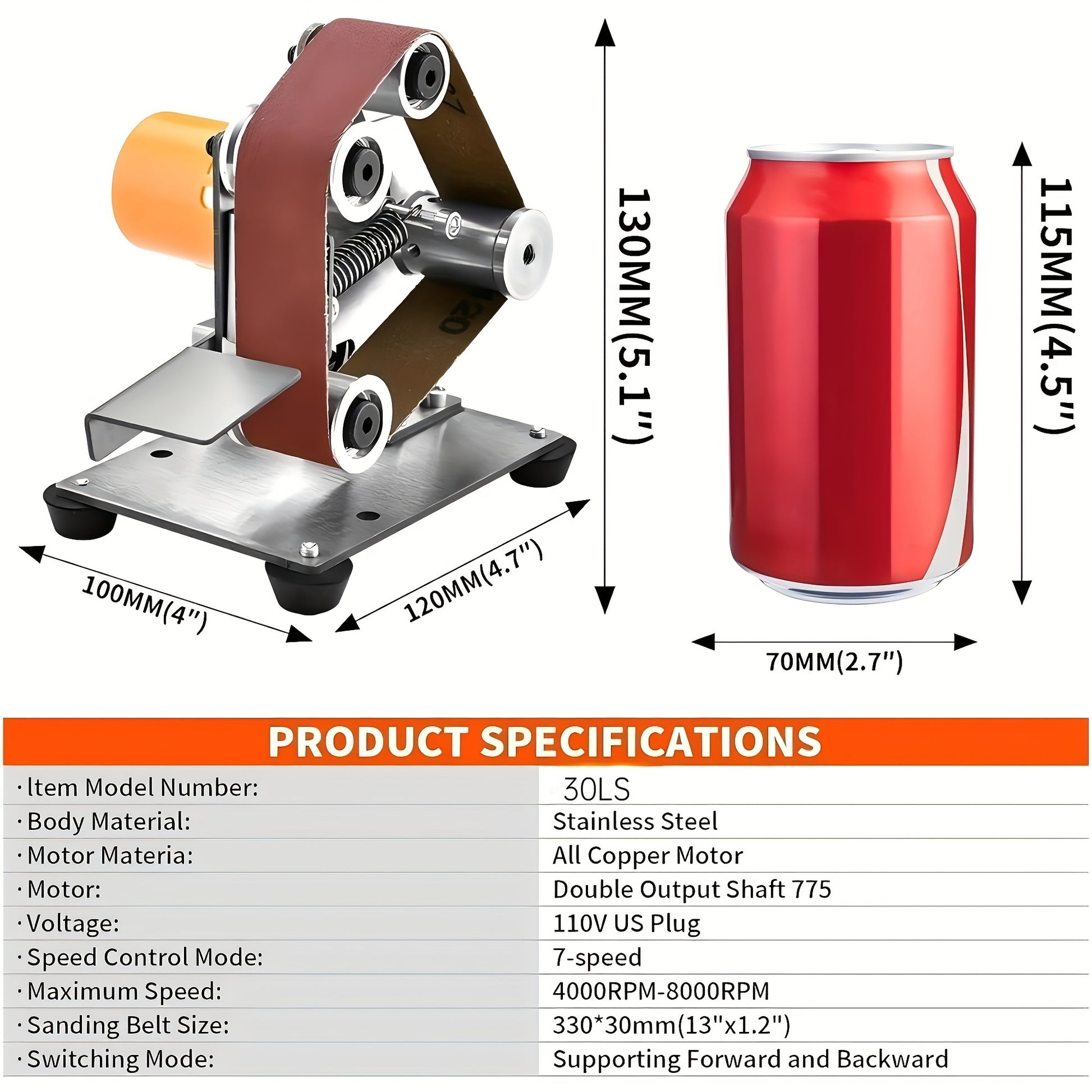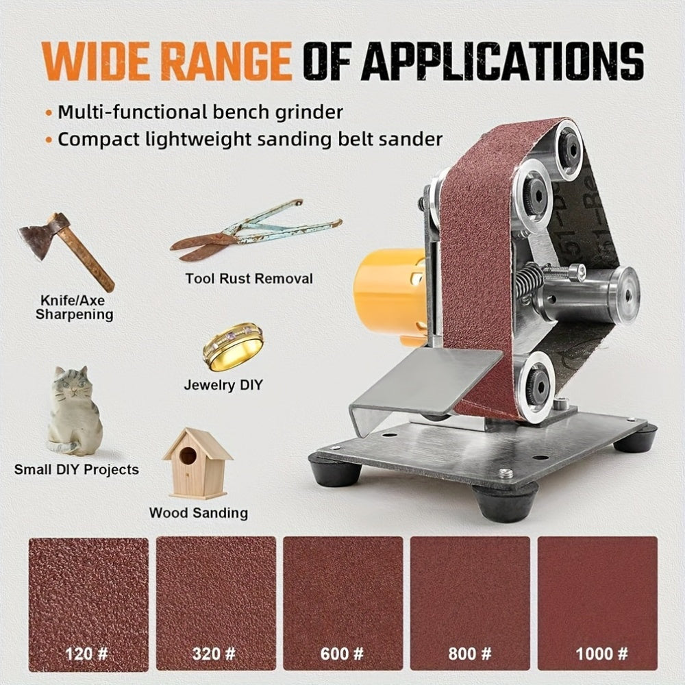 Electric Mini Belt Sander 7 Speeds 220V for Metal Wood Polishing Rust Removal