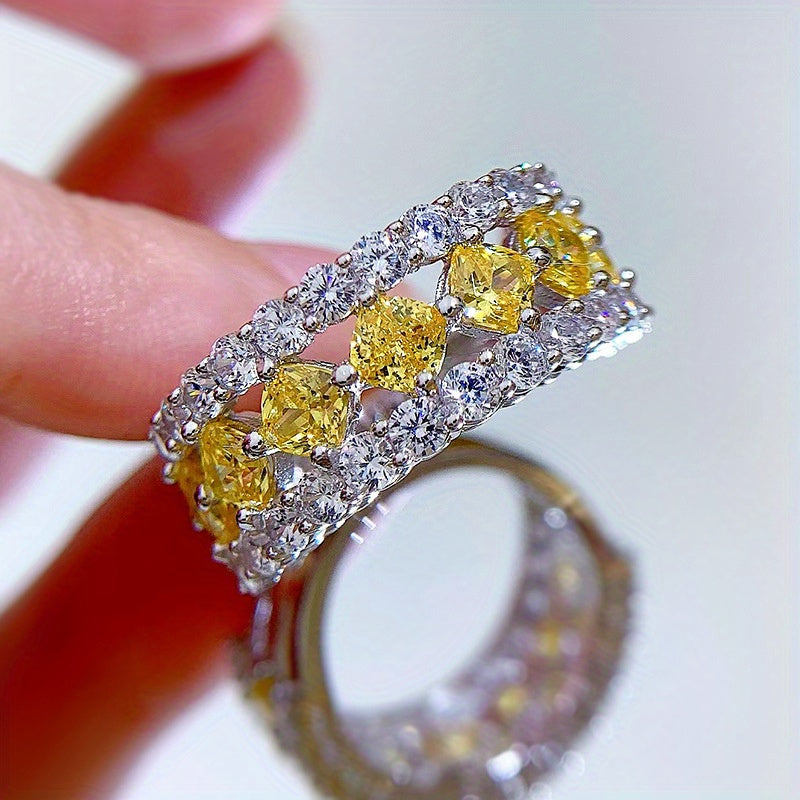 Sterling Silver Square Band Ring with Synthetic Diamonds for Women