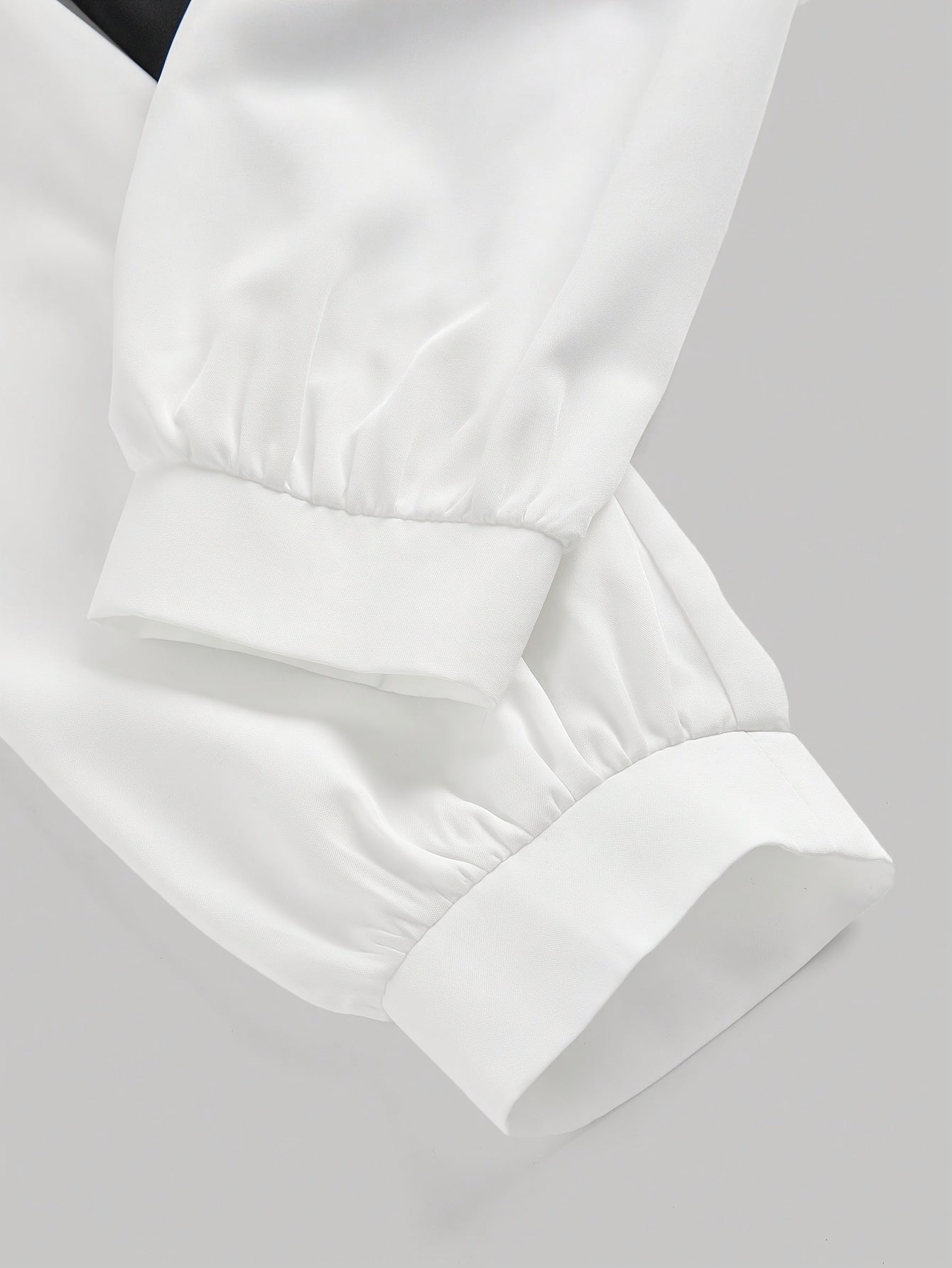 Women's Black and White Patchwork Blouse with Collar and Long Sleeves