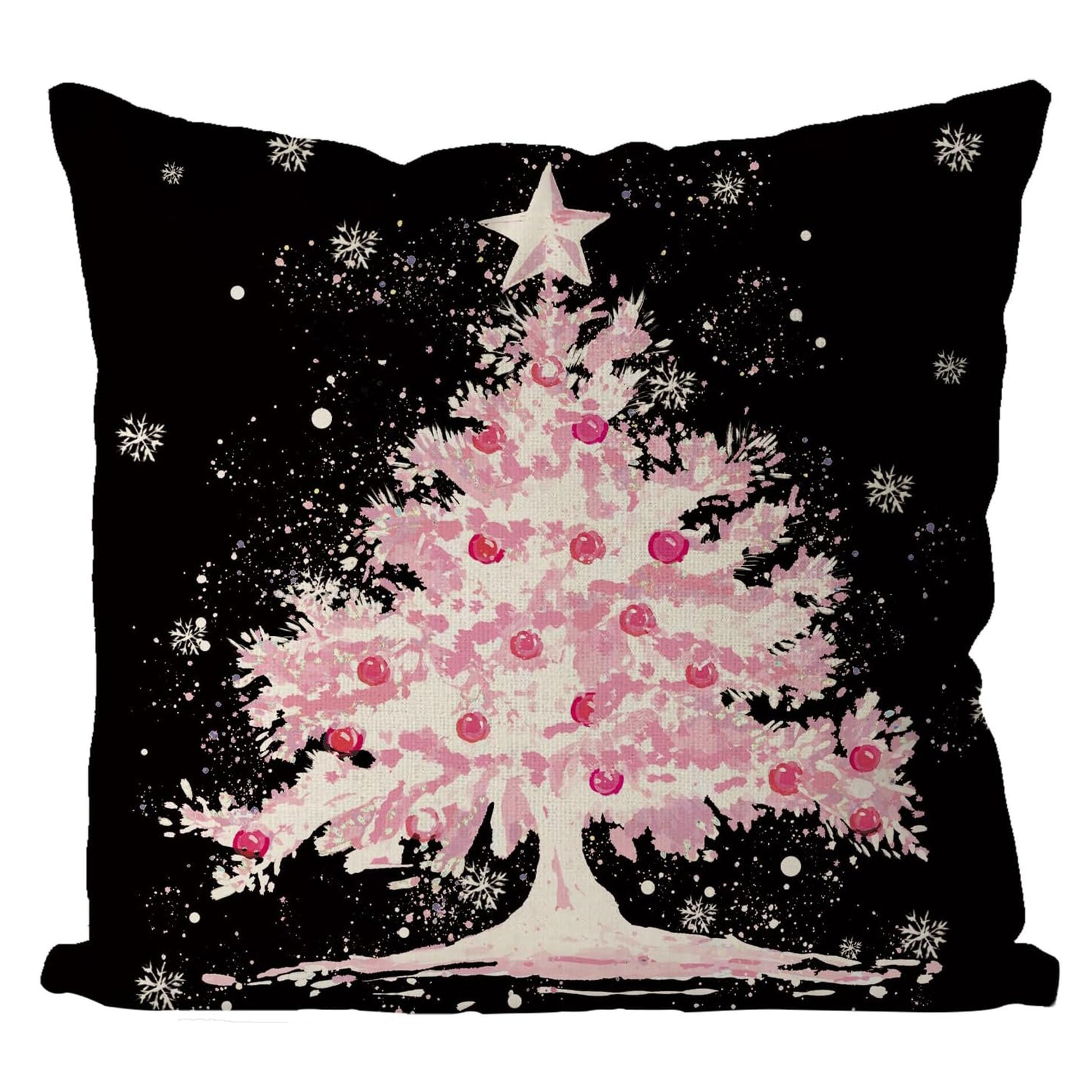 Black Linen Pillowcase with Christmas Tree Design Zip Closure Home Decor