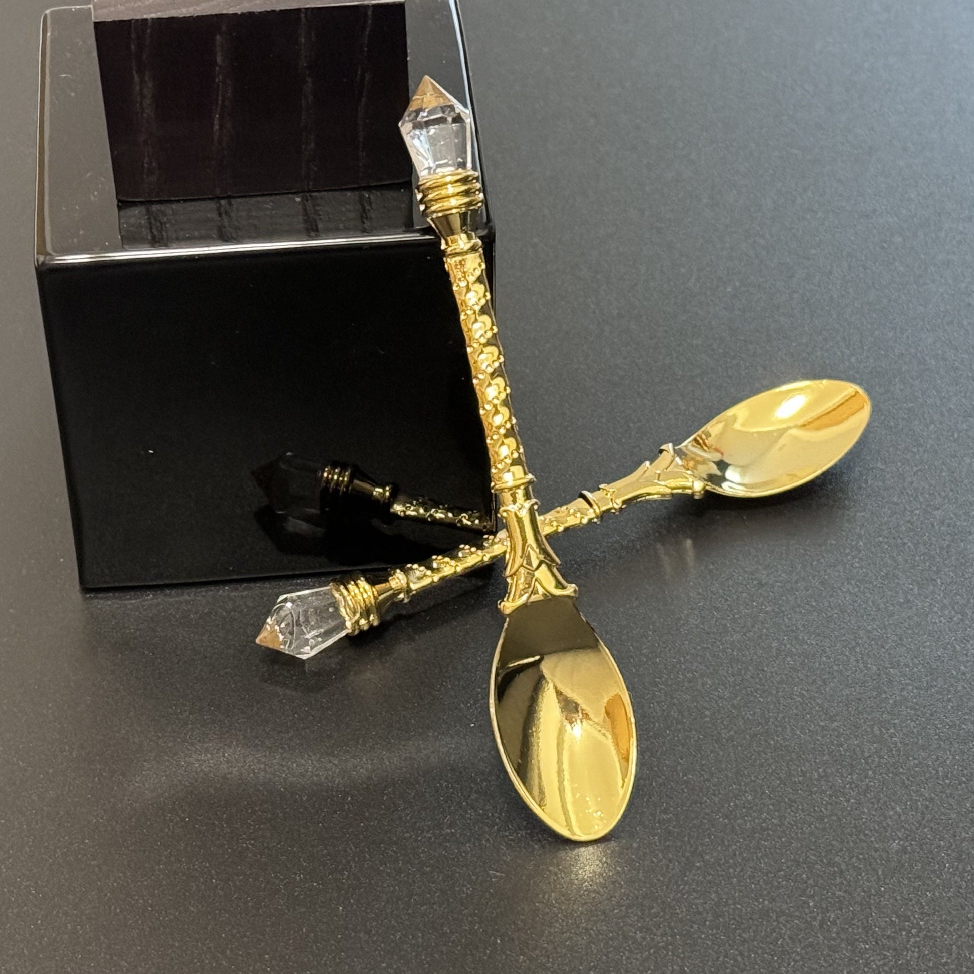 Gold-Plated Coffee Spoon with Crystal Handle for Holiday Celebrations