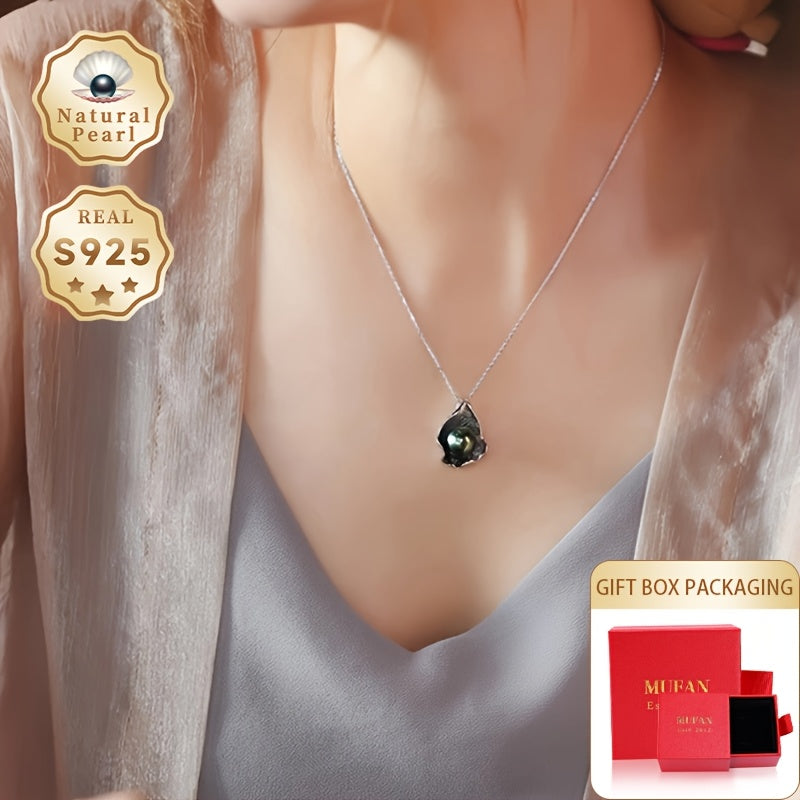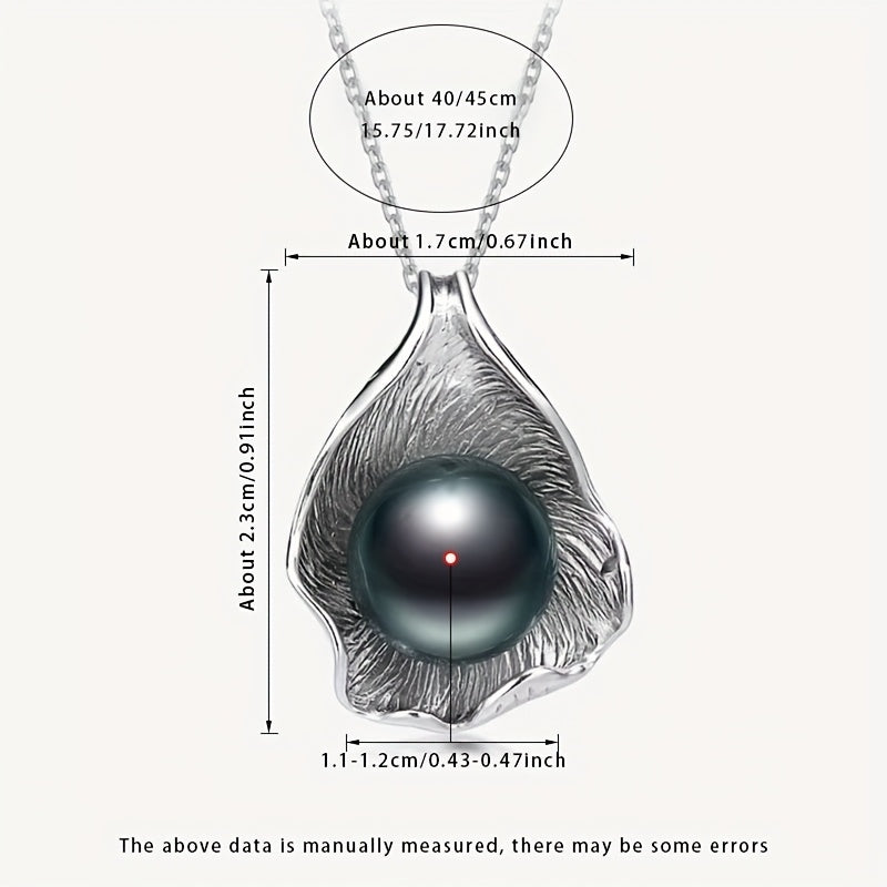 Vintage Tahitian Black Pearl Pendant Necklace Sterling Silver Leaf Design for June Birthdays
