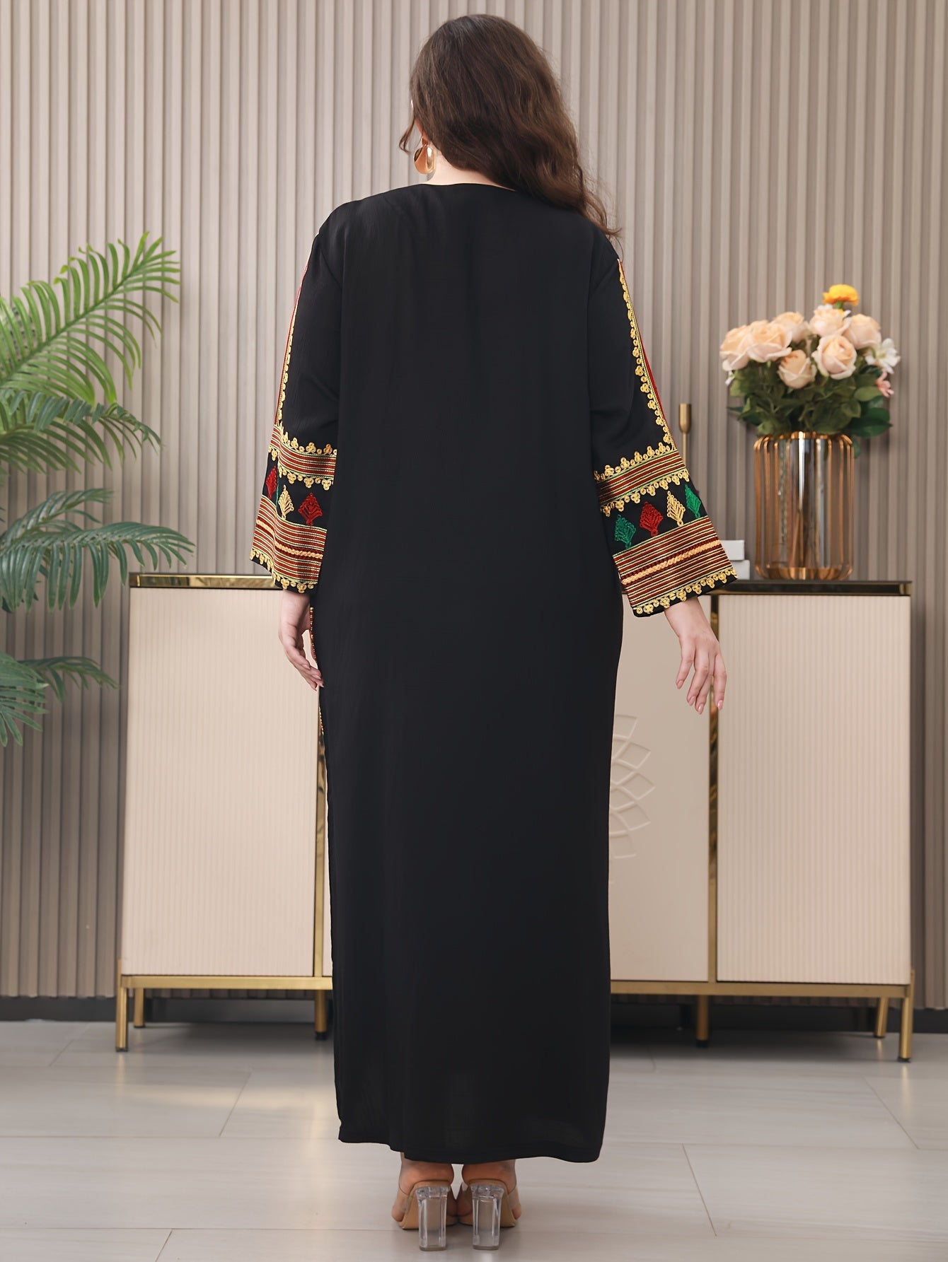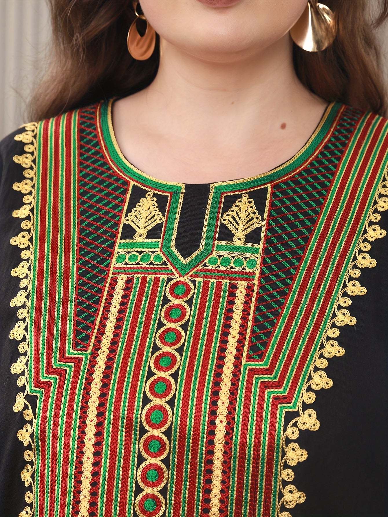 Plus Size Middle Eastern Rayon Kaftan with Embroidery for Summer Mature Women