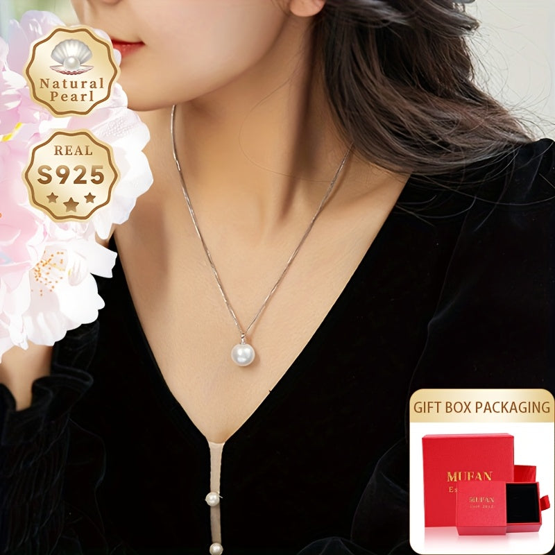 Vintage June Birthstone Pearl Pendant Necklace 13-14mm Freshwater Silver Chain