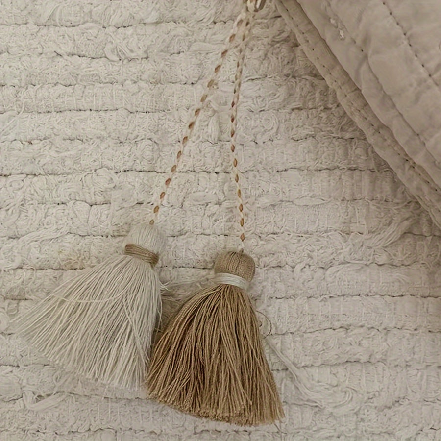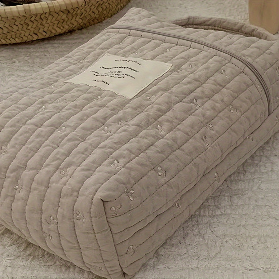 Khaki Embroidered Diaper Bag with Zipper for On-the-Go Stroller Hanging Cotton Handbag