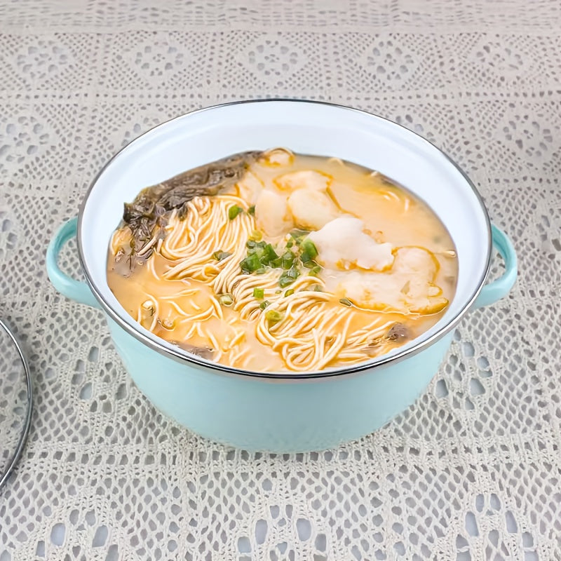 Enamel Stockpot with Lid Double Handle Thickened Design 22cm Mint Green