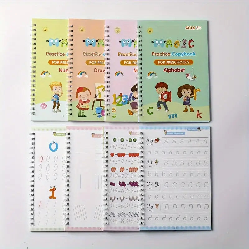 English Handwriting Practice Workbooks for Kids with Grooved Pages and Stickers, Educational Notebook Set