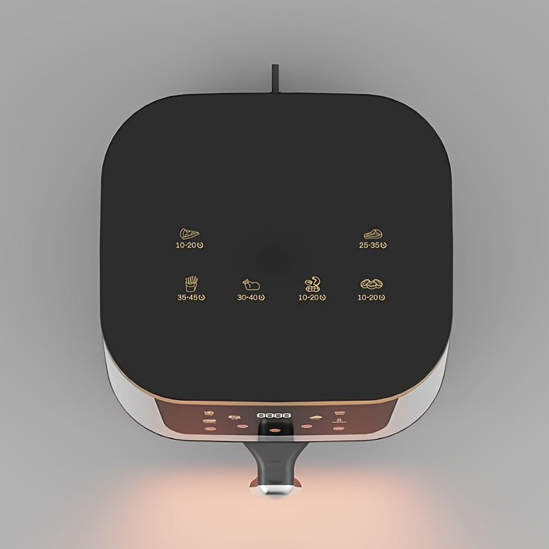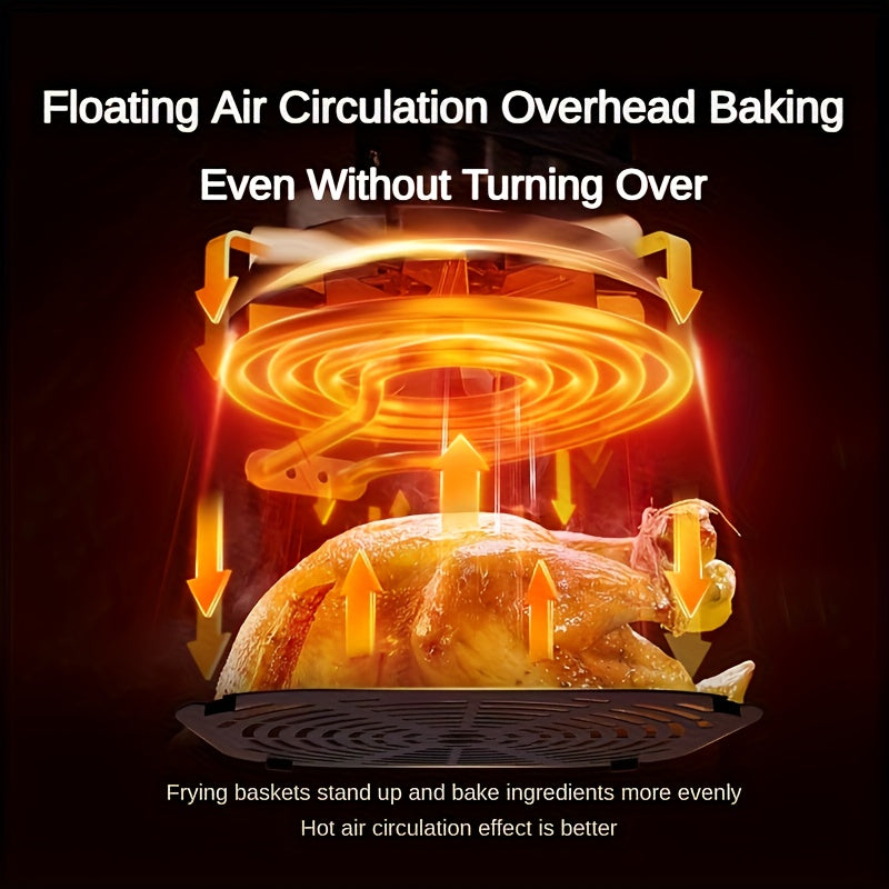 Family size electric air fryer with temperature control, non-stick coating, 10 preset touch options, and multiple cooking functions