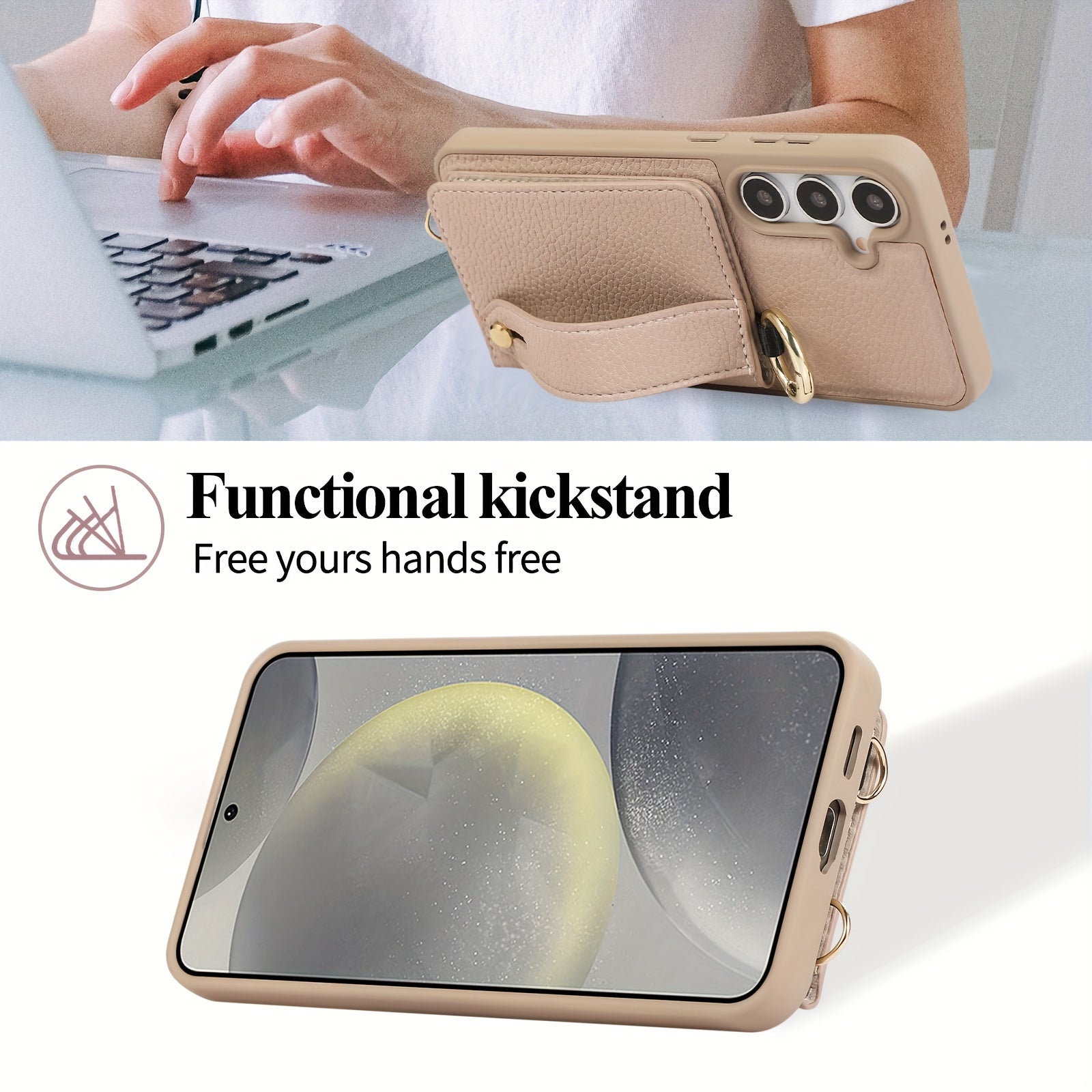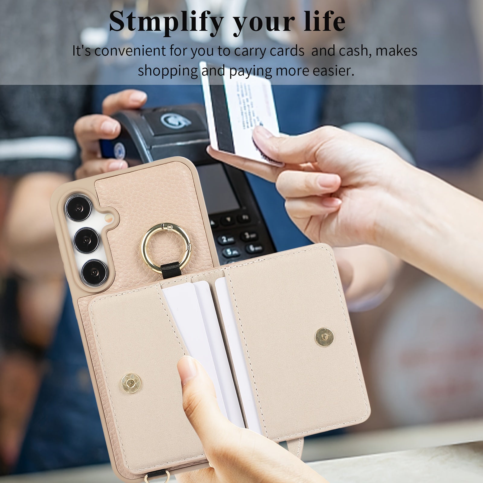 Faux Leather Crossbody Phone Bag for Samsung Plus with Wallet Card Slots Lanyard