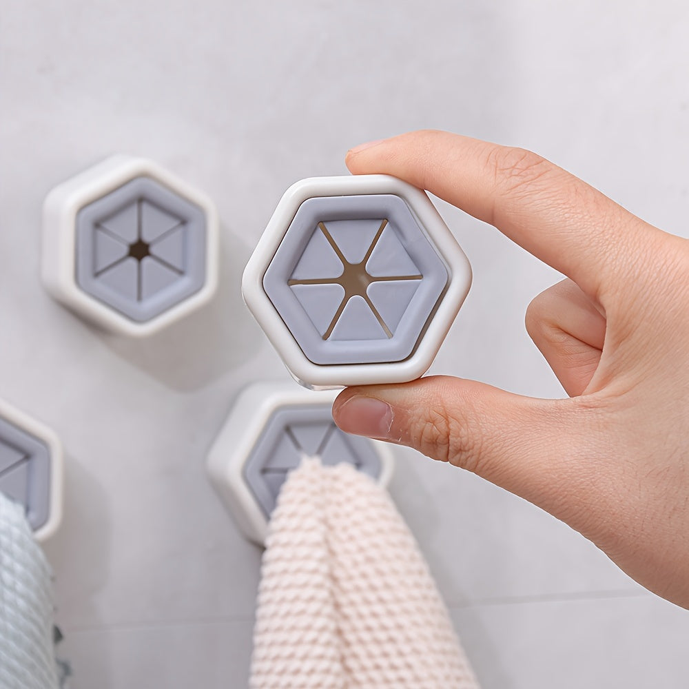 Hexagonal Wall Hooks Set for Towel Storage, Creative Hole-Free Racks, Kitchen Accessories