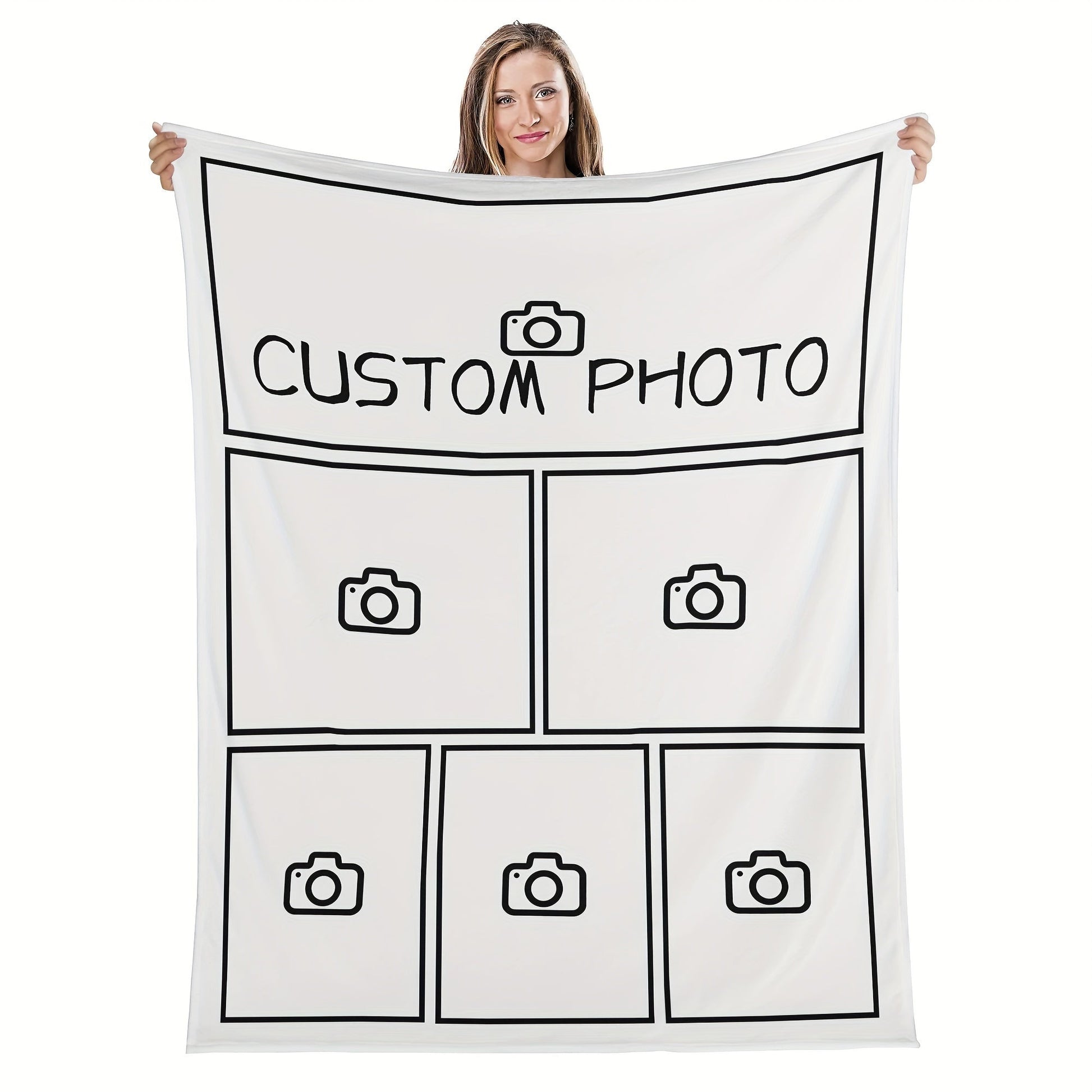 Personalized Flannel Blanket with Photo Collage for Sofa and Bed, Machine Washable