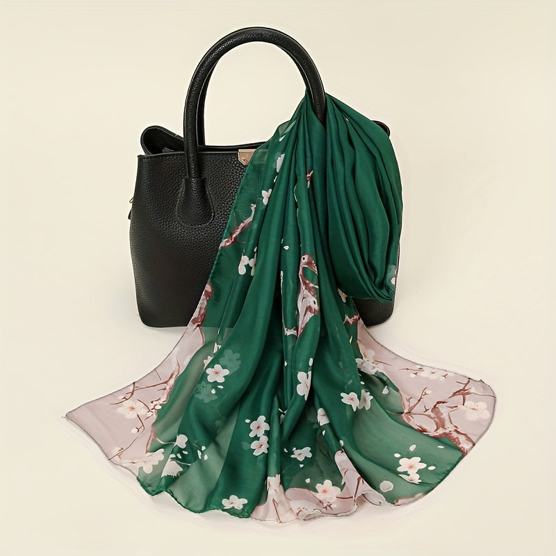 Bohemian Style Floral Polyester Scarf Long Shawl for Casual Beach Sun Protection