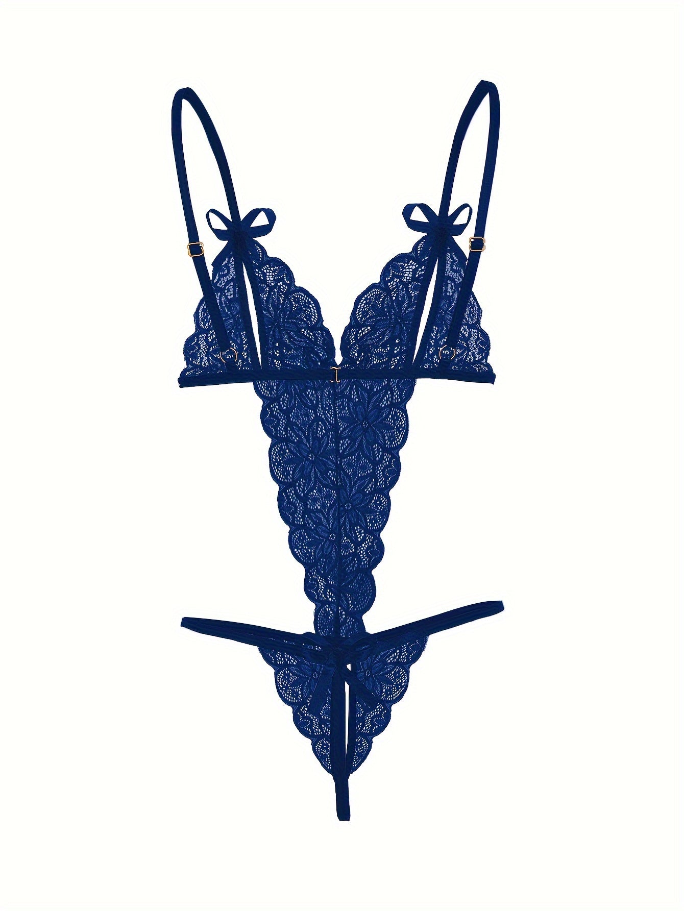 Lingerie Lace Backless Bodysuit with Open Crotch Thong and Bow