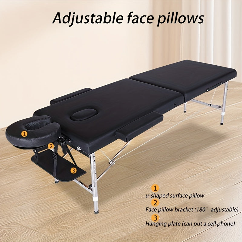 Foldable Adjustable Height Massage Table with Face Pillow for Spa Home Tattoo
