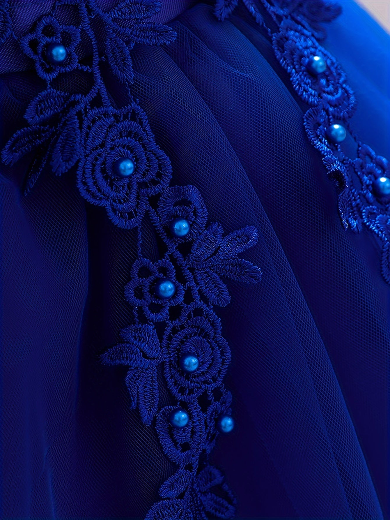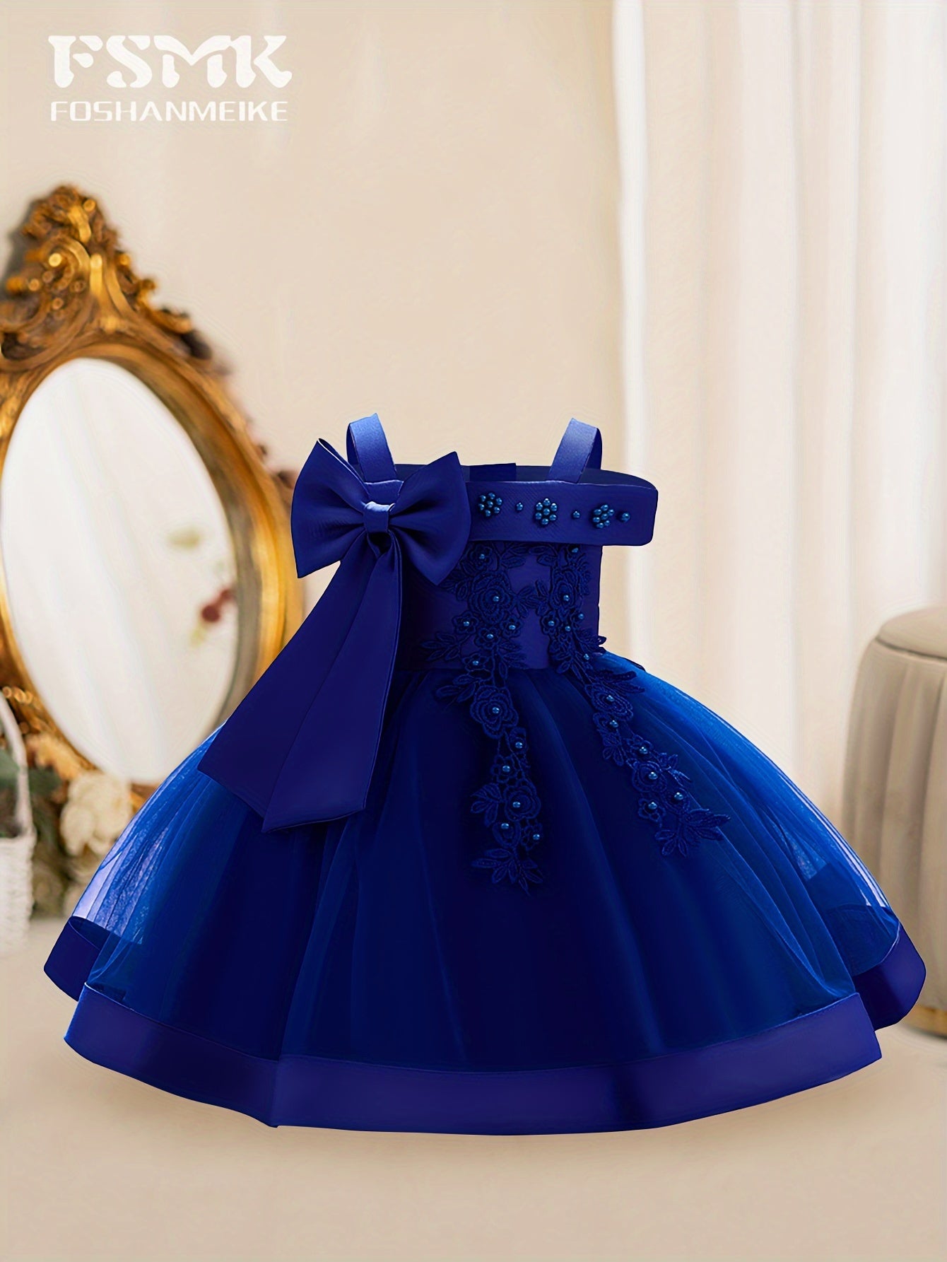 Girls Sleeveless Flower Embroidered Midi Dress with Bowknot for Formal Parties