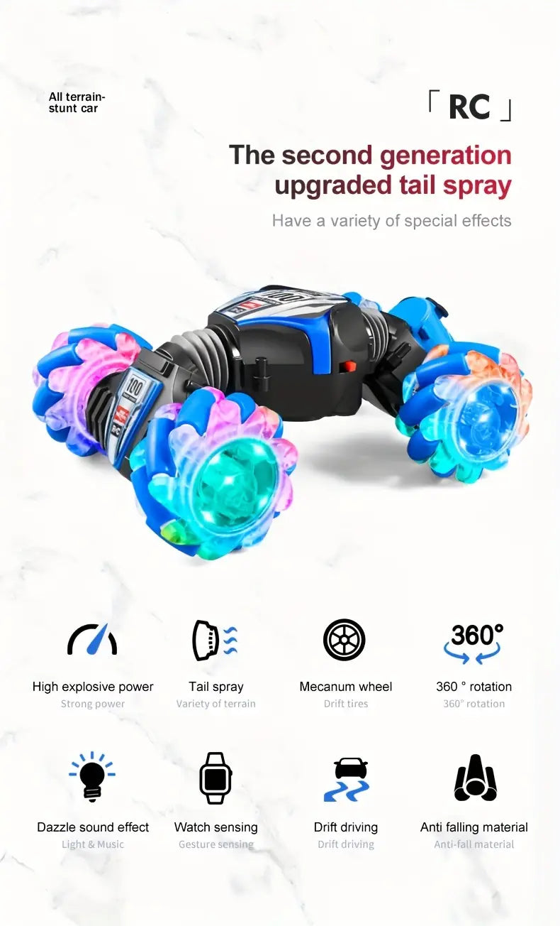 Gesture Sensing RC Car with Spray Emission Climbing Stunts Weatherproof Flashing Lights Blue Black