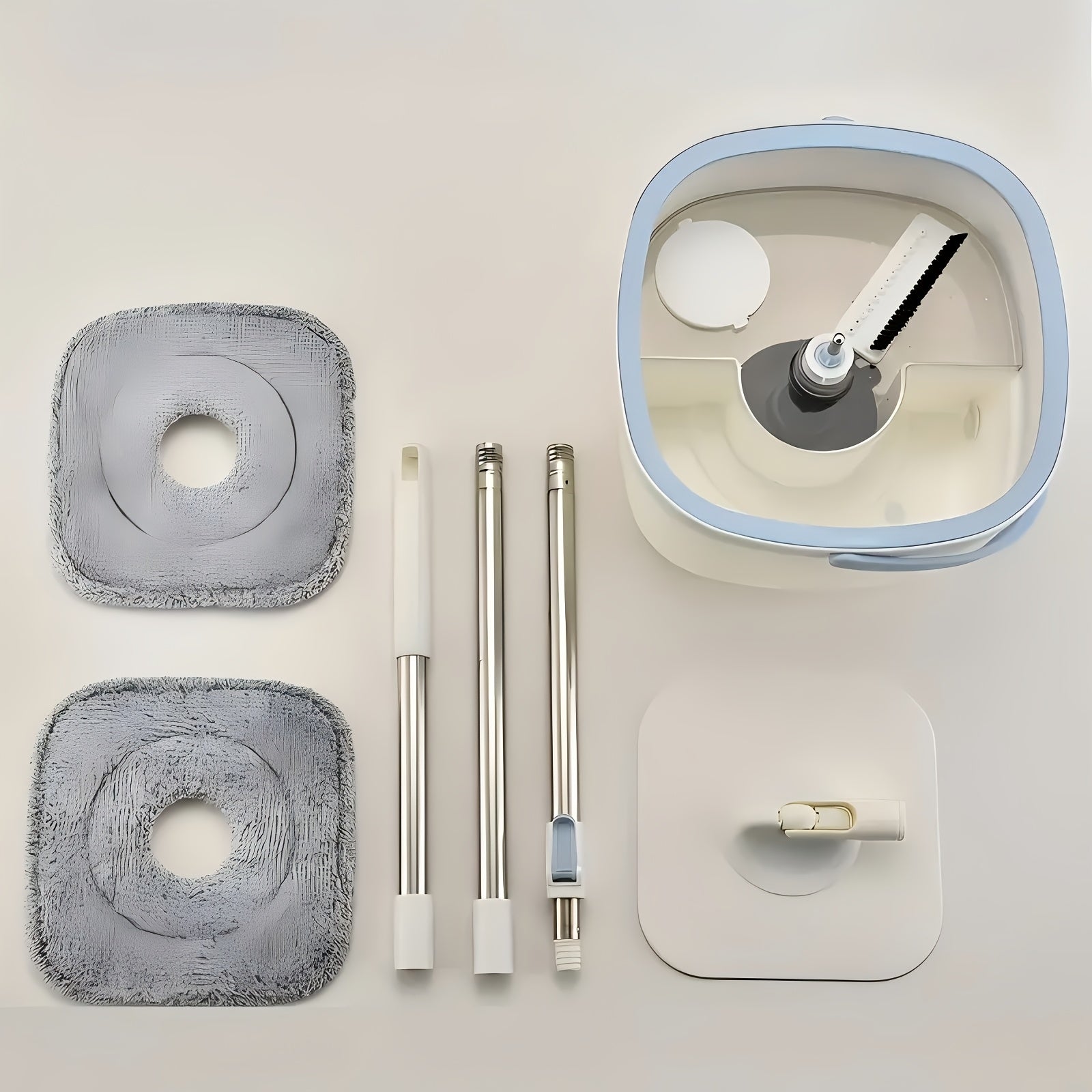 Wheat Straw Spin Mop and Bucket Set with Separate Dirty Water Compartment