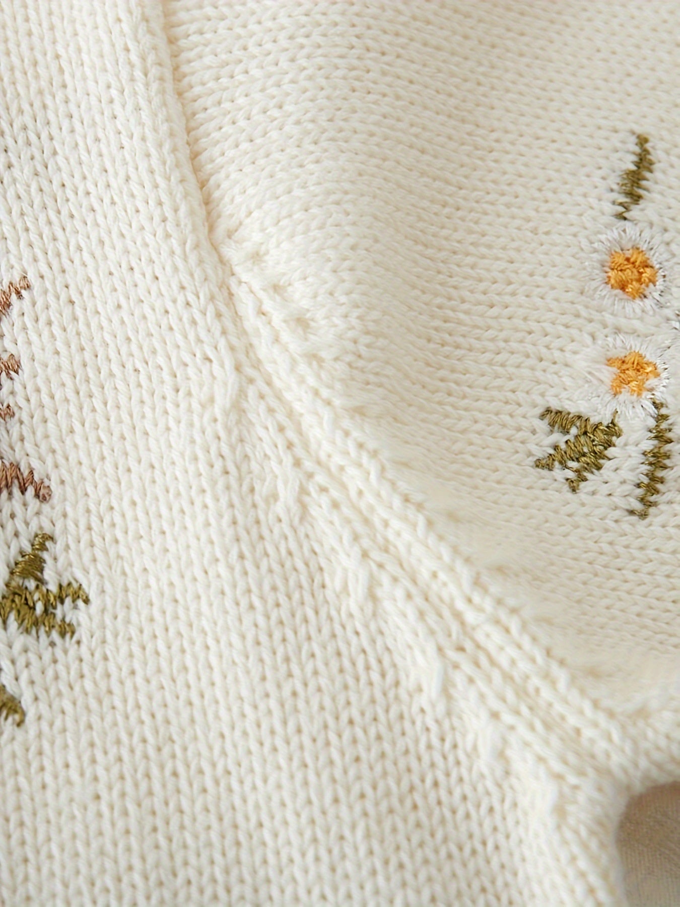 Girls' Cotton Knit Sweater Long Sleeve Floral Print Fall Winter