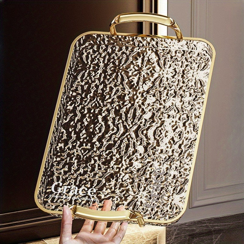 Golden Rimmed Rectangular Serving Trays Set Large Transparent Plastic with Handles for Fruits Snacks Pastries