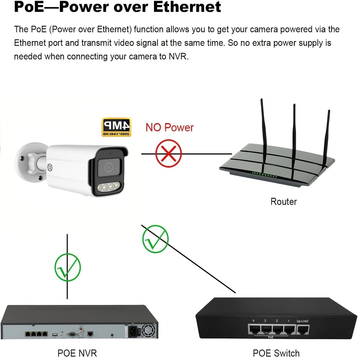 4MP 2K Outdoor PoE Security Camera with Night Vision Human Detection Wide-Angle Lens