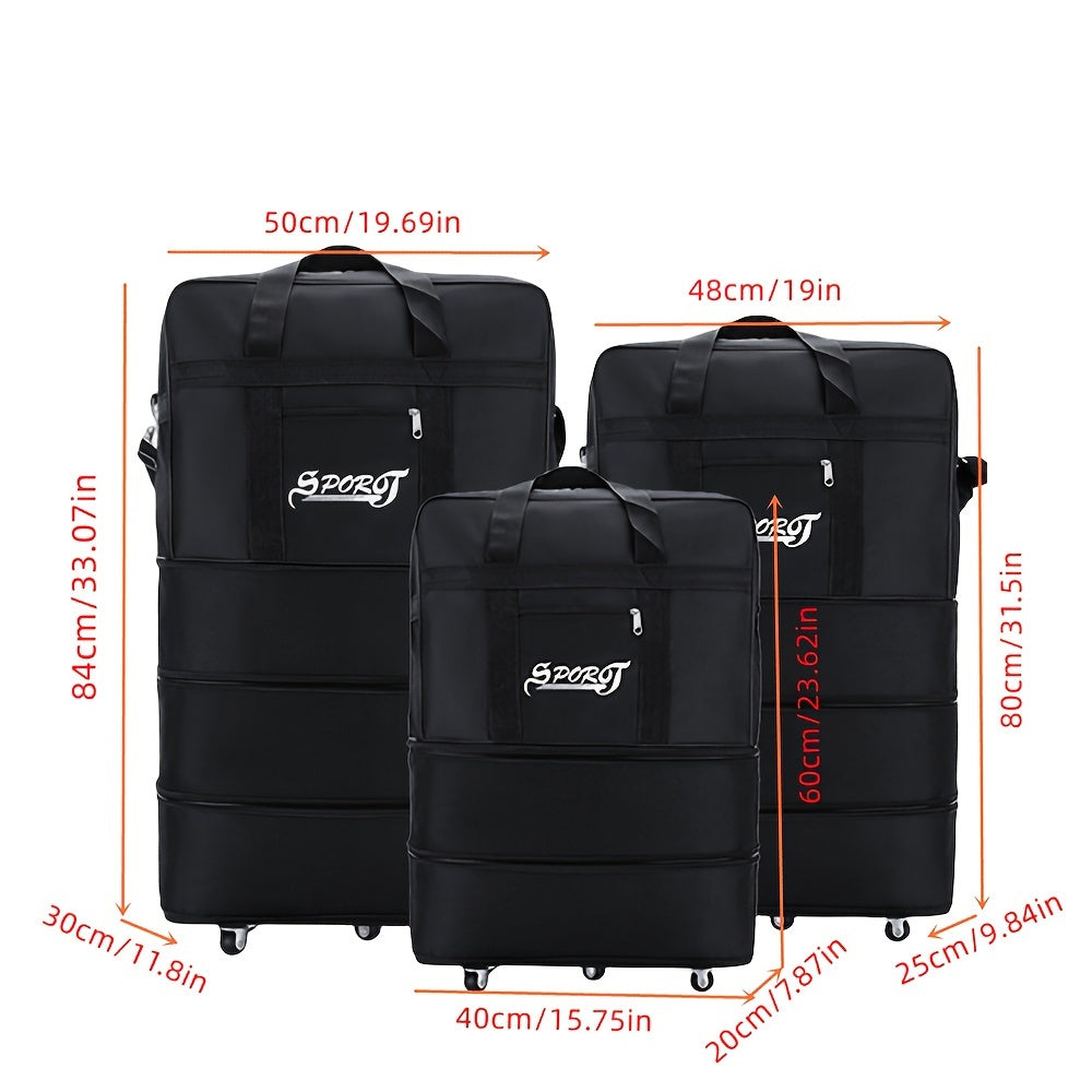 Multilayer Wheeled Duffel Bag Lightweight Nylon Travel Trolley Suitcase Black