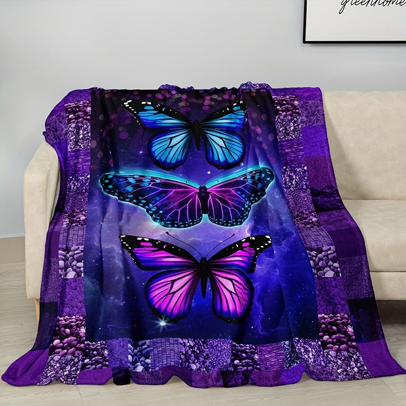 Contemporary Butterfly Print Flannel Blanket All Seasons Animal Theme 200-250gsm Polyester Knit