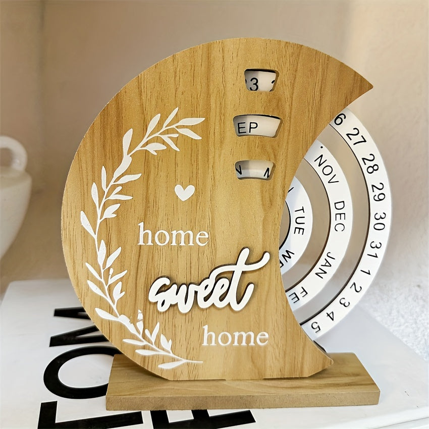 Handcrafted Wooden Perpetual Desk Calendar with Moon Ferris Wheel Design Weekly Monthly View