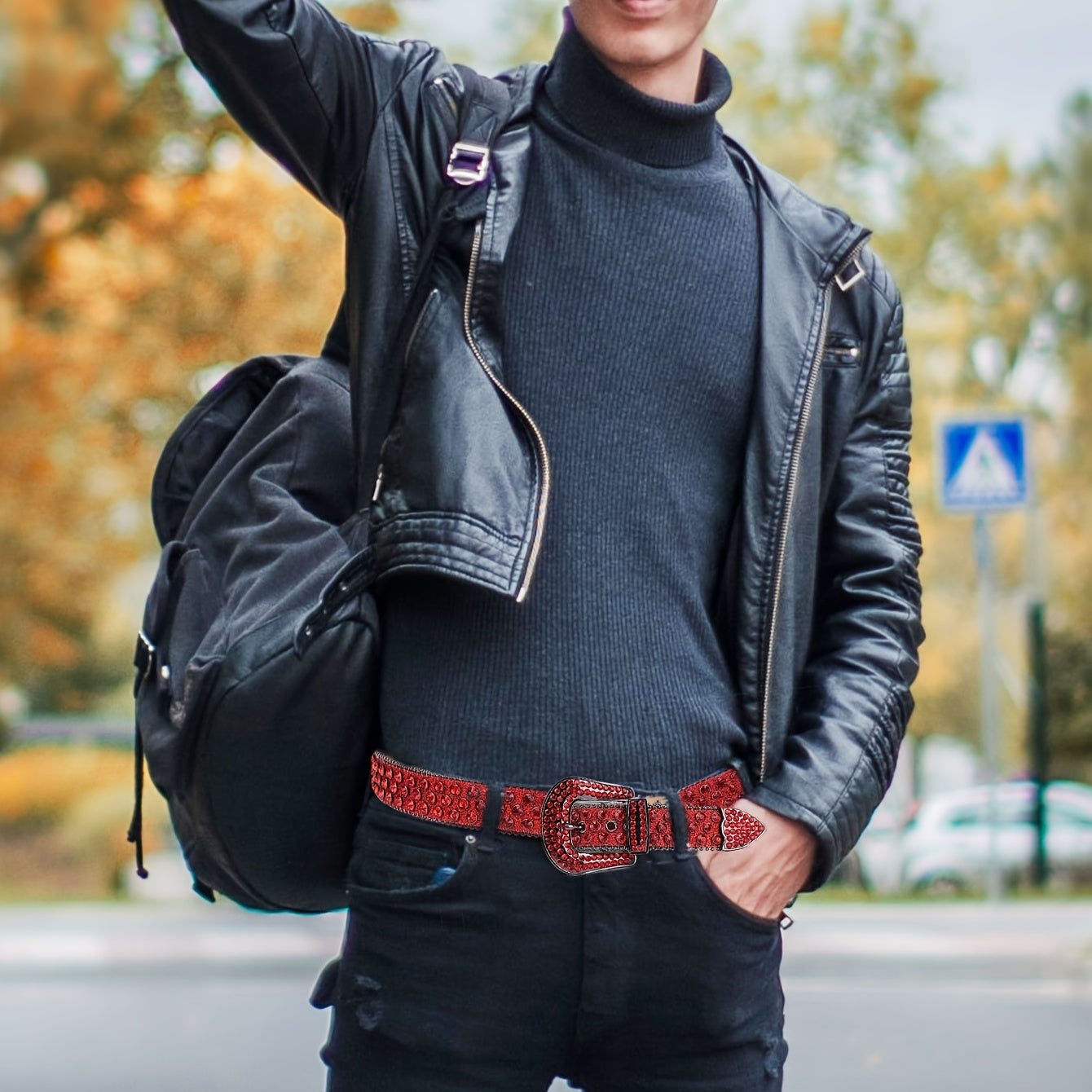 Unisex Crystal Studded Western Rhinestone Belt for Pants and Jeans
