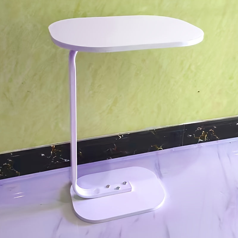 Hardwood Sofa End Table with Metal Base C-Shaped TV Tray for Living Room Bedroom