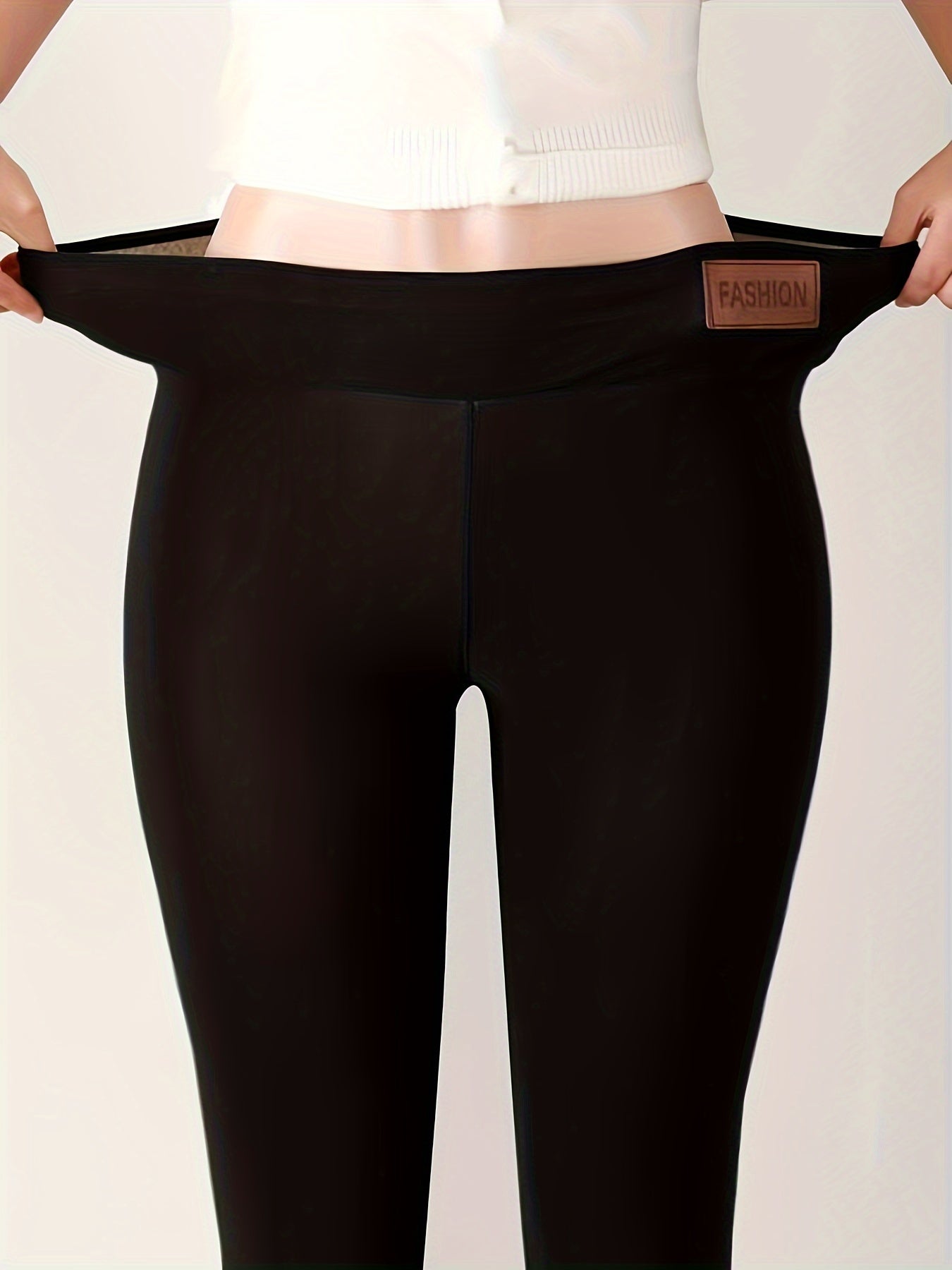 Women's Fleece-Lined High-Waisted Leggings Polyester Elastane Solid Color